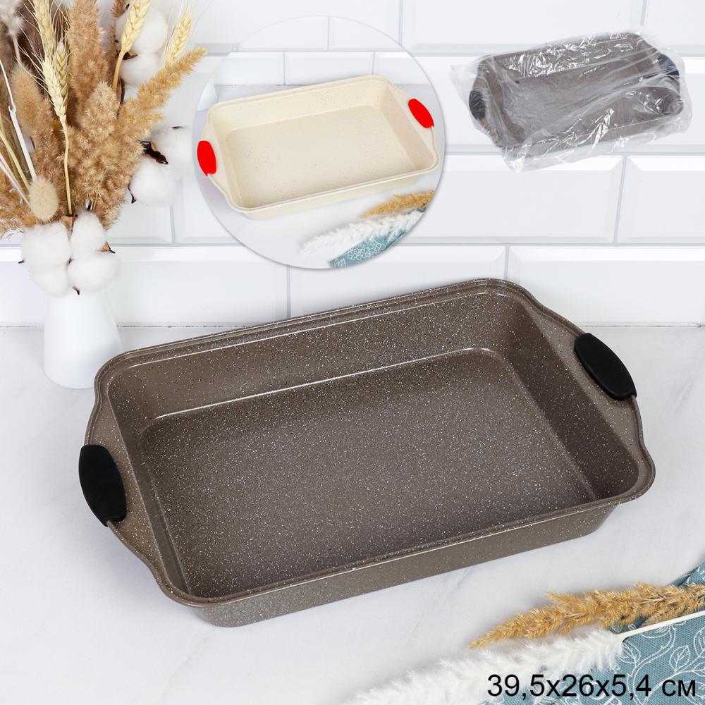 Противень 39,5х26х5,4 см Мрамор с силиконовыми ручками/ RSD-933 /уп 30/ 0.52/ 3 фото