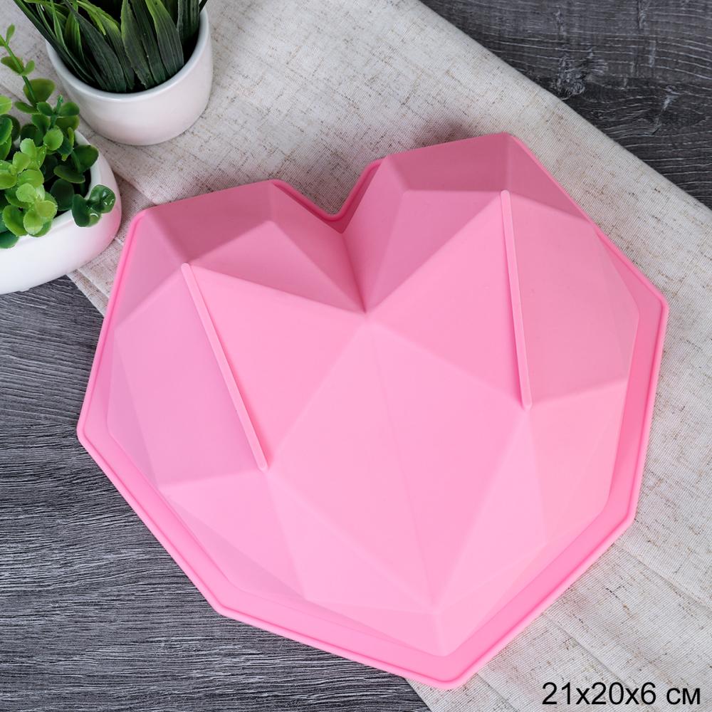 Форма для выпечки Кекс 21х20х6 см силиконовая Сердце с гранями / HL-009 /уп 200/ 0,082/ ПРОМО АКЦИЯ 2 фото