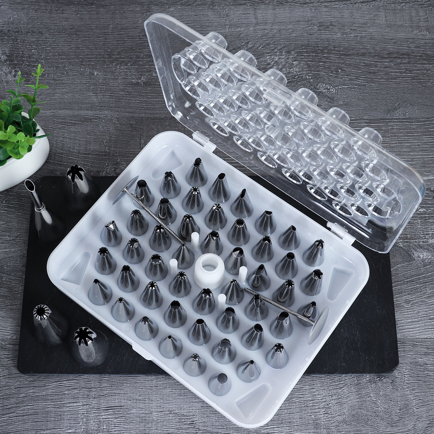 Кондитерские насадки 52 штуки с адаптером в контейнере / 191-699 /уп 48/ малые 18 мм 48 штук/ большие 30 мм  4 штуки 2 фото