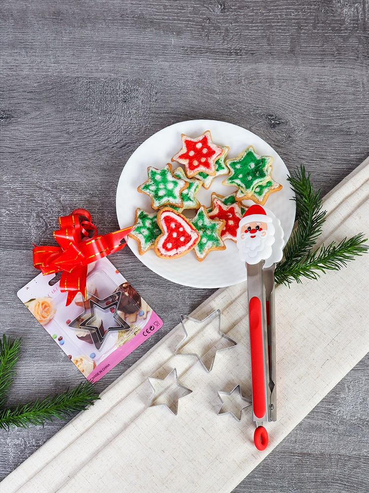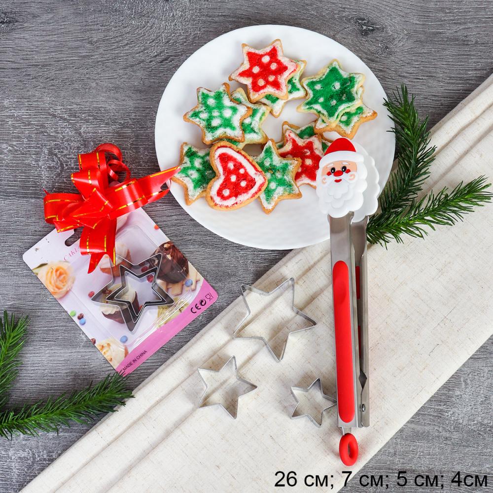 Подарочный набор Щипцы металл силикон 26 см + формочки для печенья/ QT- 907 /уп/ Новогодний 3 фото