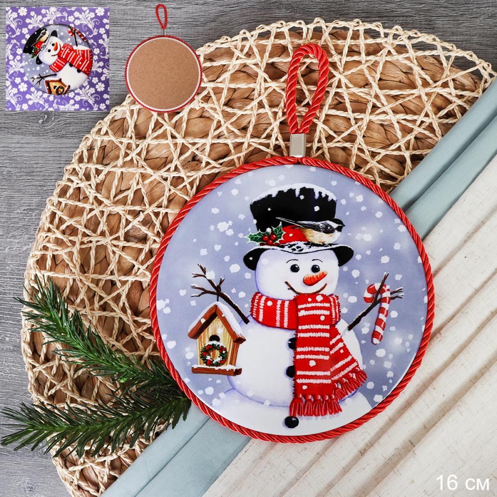 Подставка под горячее 16 см Снеговик / КD004 /уп 36/ новогодняя 3 фото