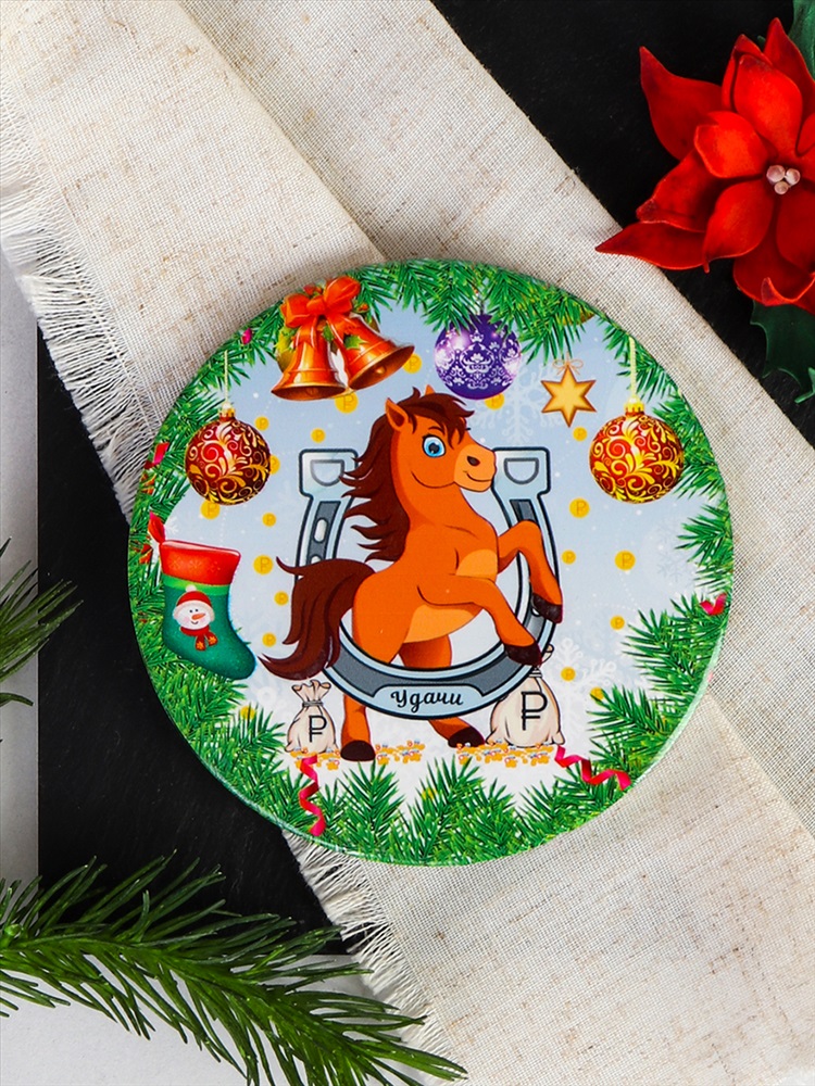 Подставка под горячее, кружку 10 см Символ Года 2026 Лошадь / КD021 /уп 144/ новогодняя 2 фото