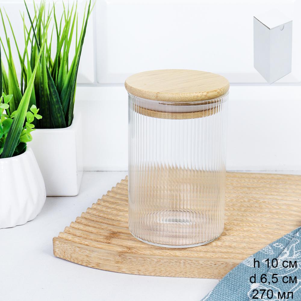 Банка круглая для сыпучих бамбуковая крышка d-65/100 мм Вертикаль 270 мл / 7174 /уп 160/ 3 фото