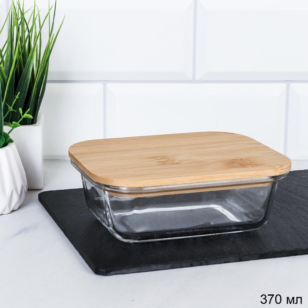 Контейнер прямоугольный крышка бамбук 370 мл стекло  / P370 /уп 48/ 2 фото