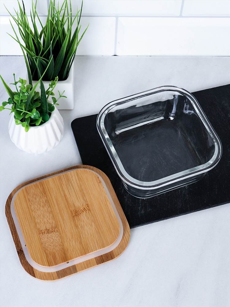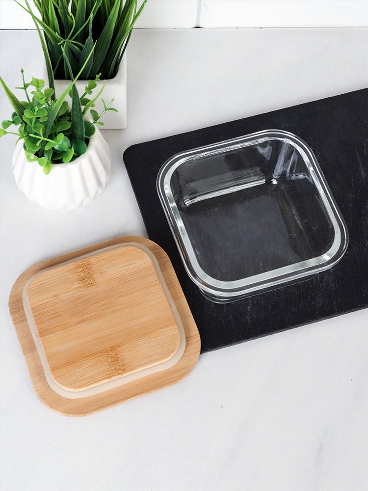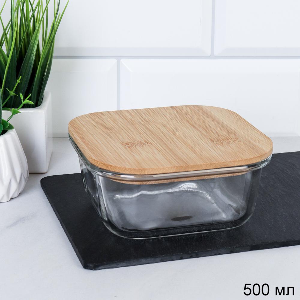 Контейнер квадратный крышка бамбук 500 мл стекло  / K500 /уп 36/ 2 фото