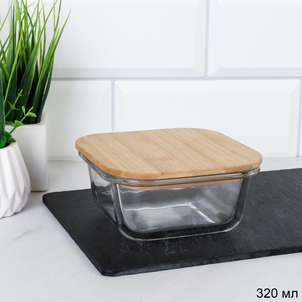 Контейнер квадратный крышка бамбук 320 мл стекло  / K320 /уп 48/ 2 фото