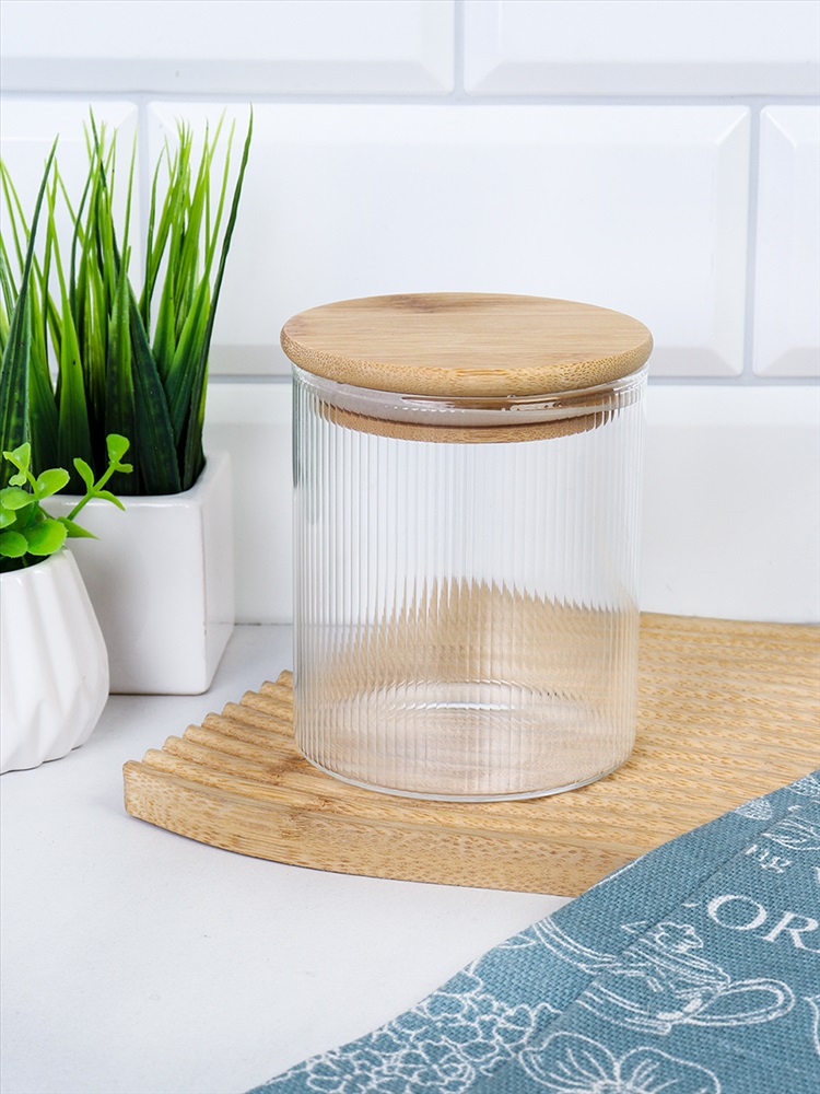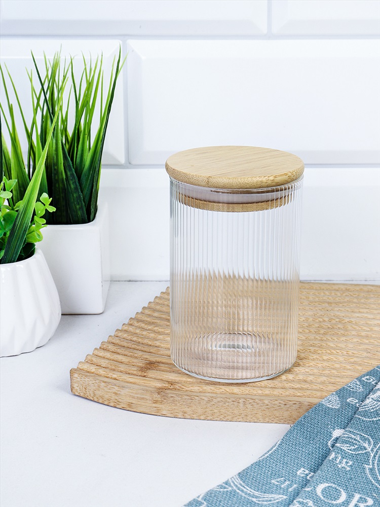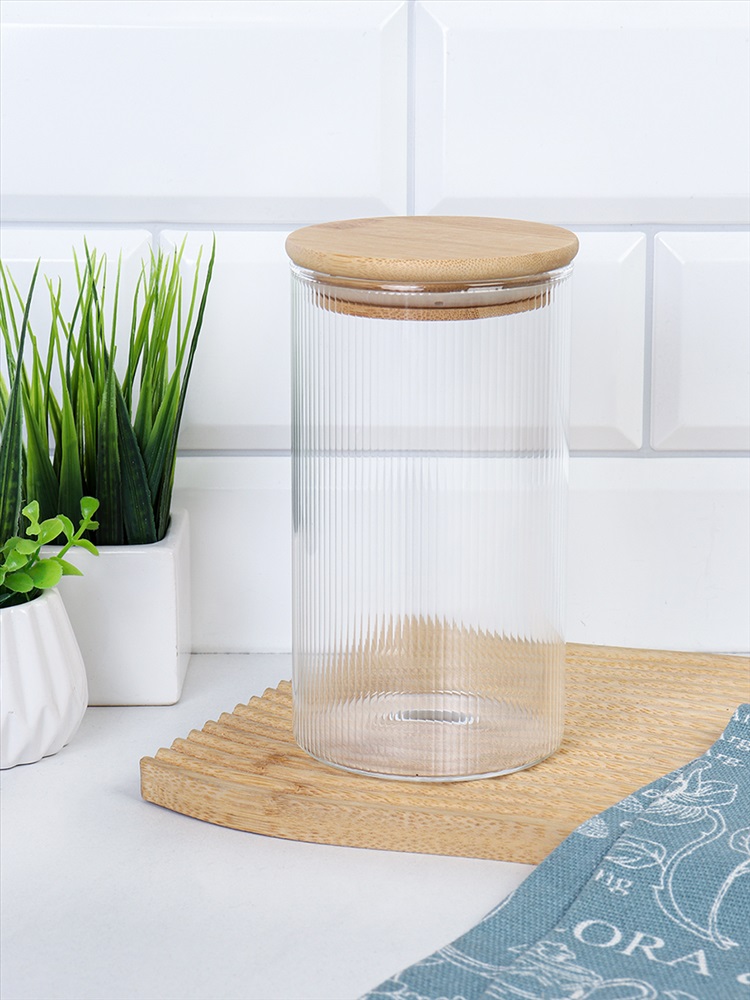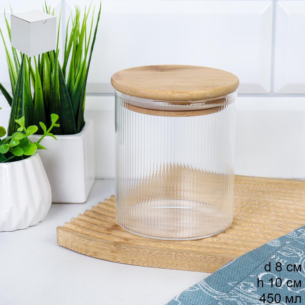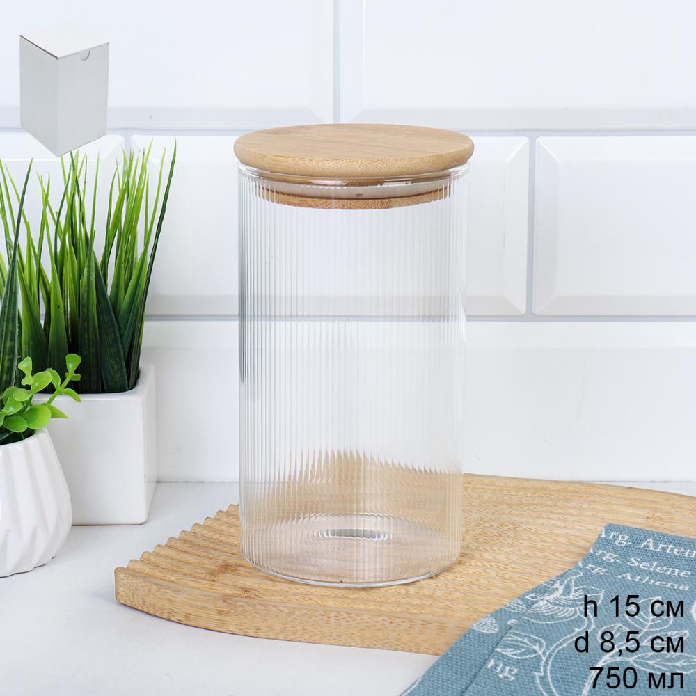 Банка круглая для сыпучих бамбуковая крышка d-85/150 мм Вертикаль 700 мл / 7178 /уп 90/ 3 фото