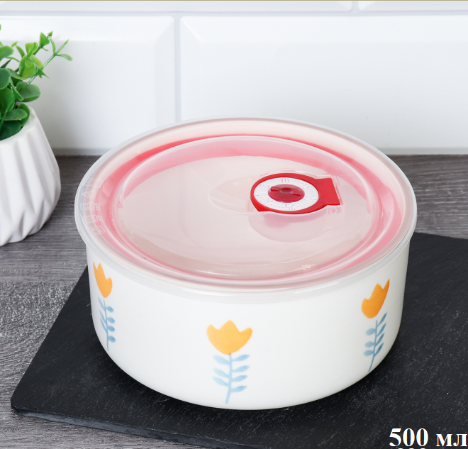 Контейнер салатник 500 мл крышка с клапаном / A-591 /уп 36/ Фарфор Цветочки 2 фото