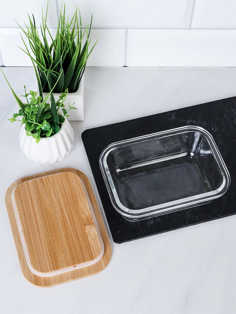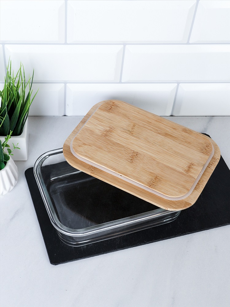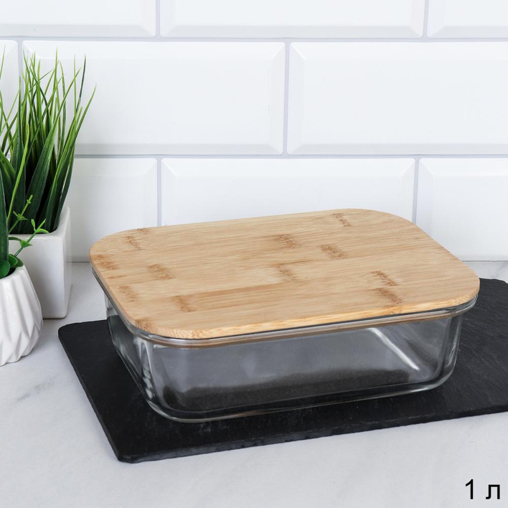 Контейнер прямоугольный крышка бамбук 1000 мл стекло / P1040 /уп 24/ 2 фото