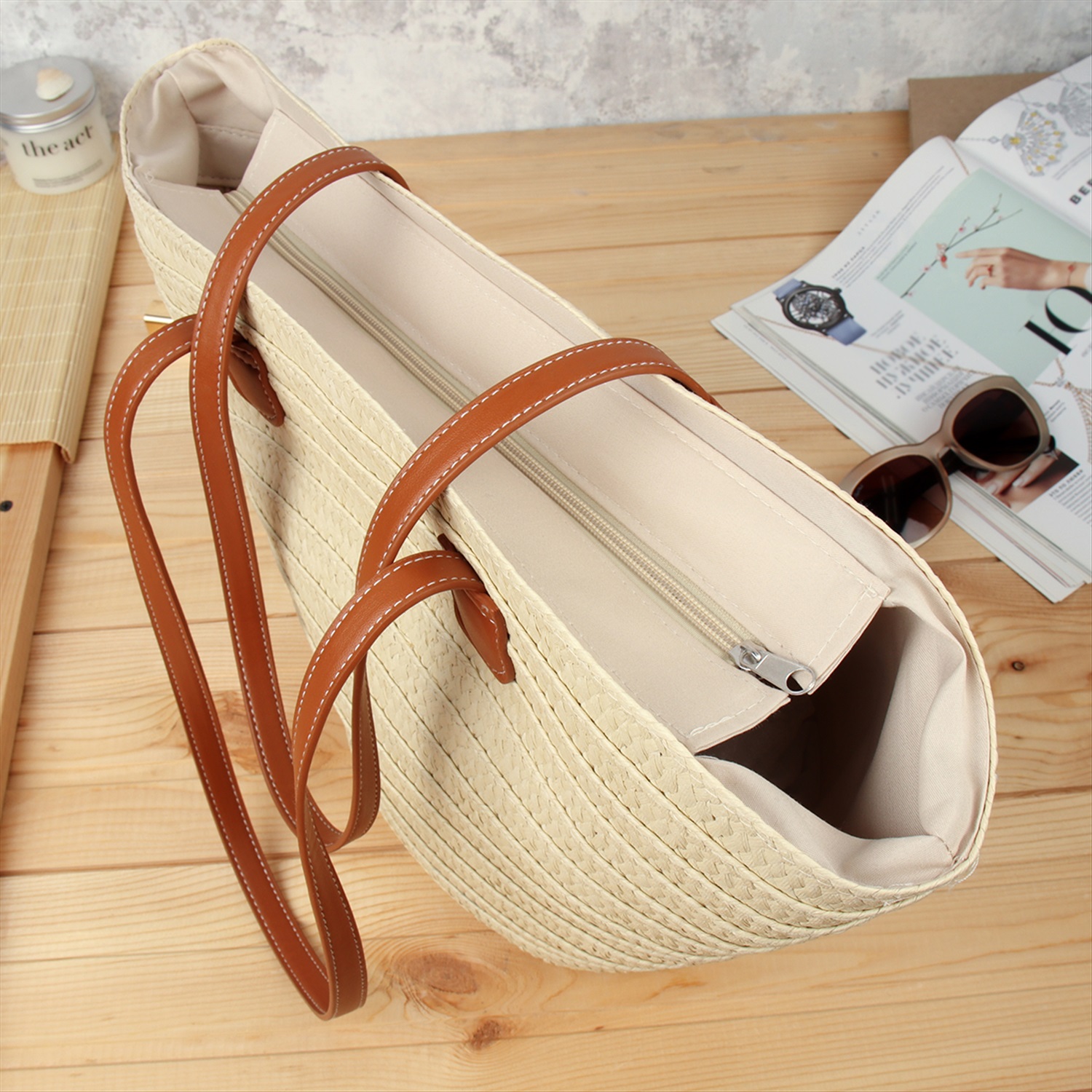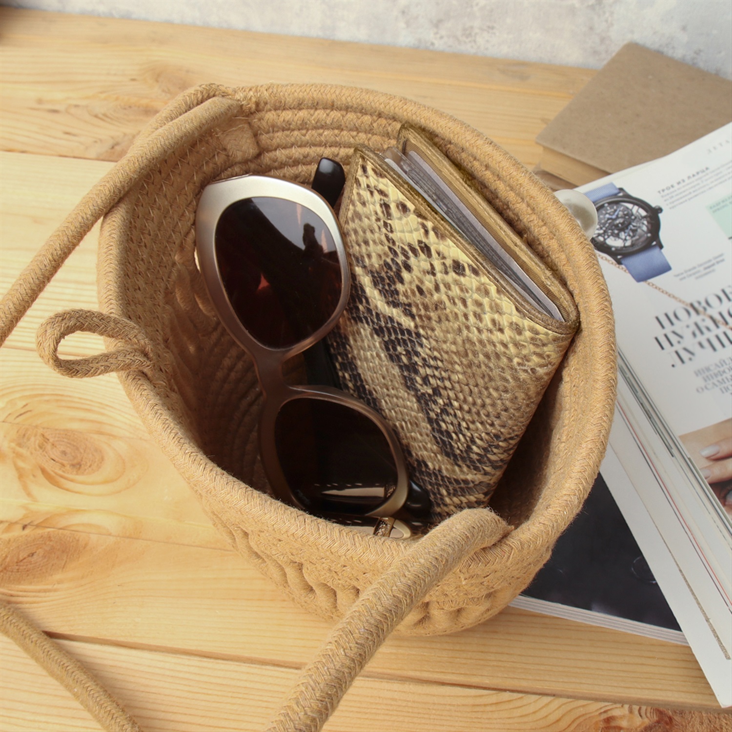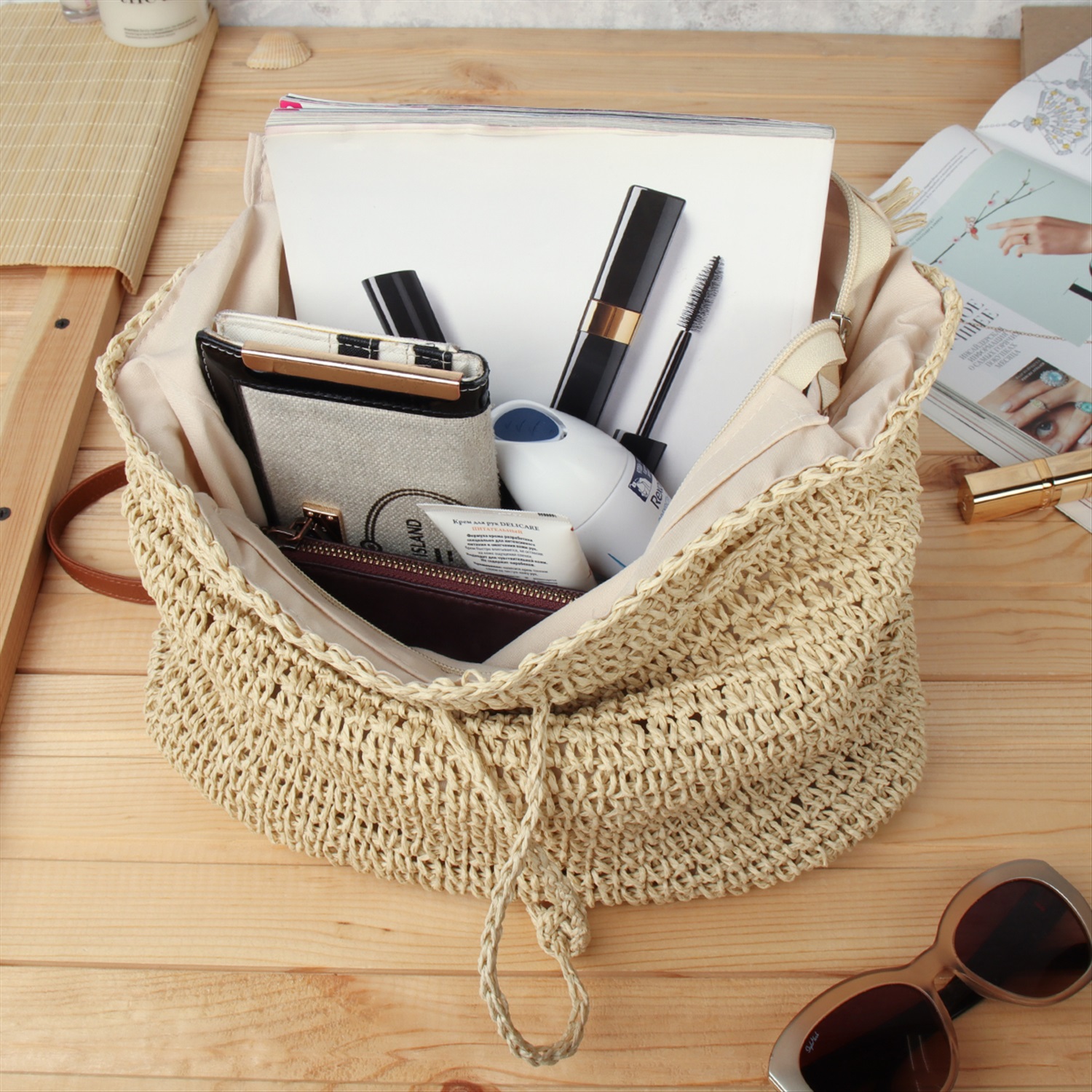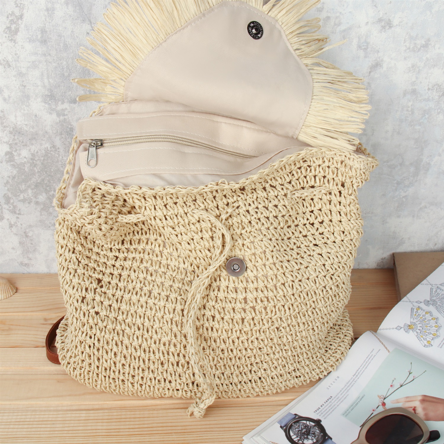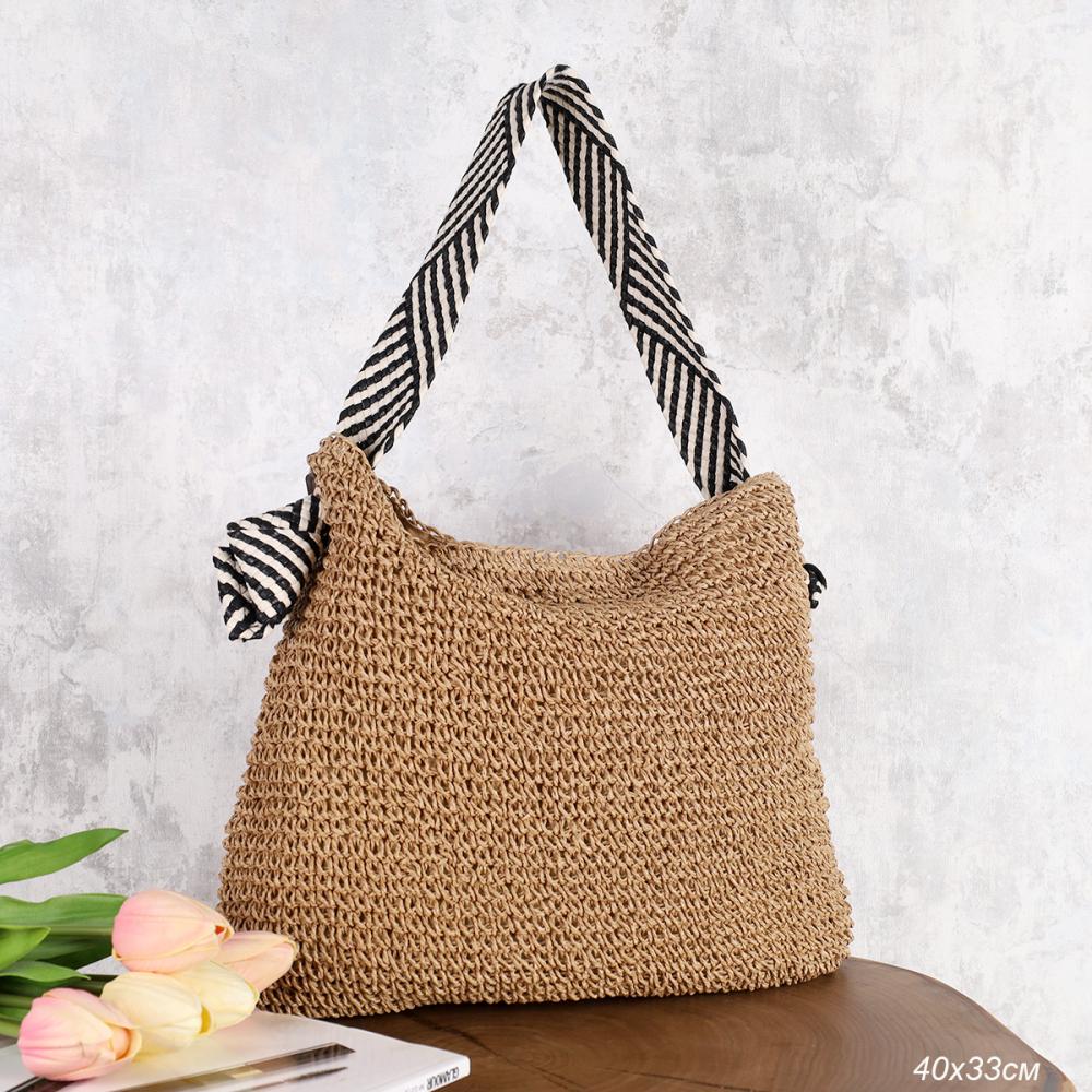 Сумка плетеная 27x43x13 / DW-20 /уп 50/бежевая 6 фото