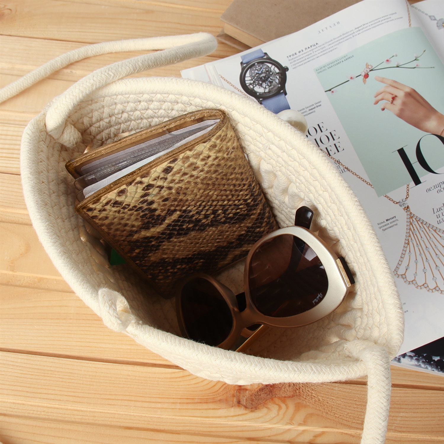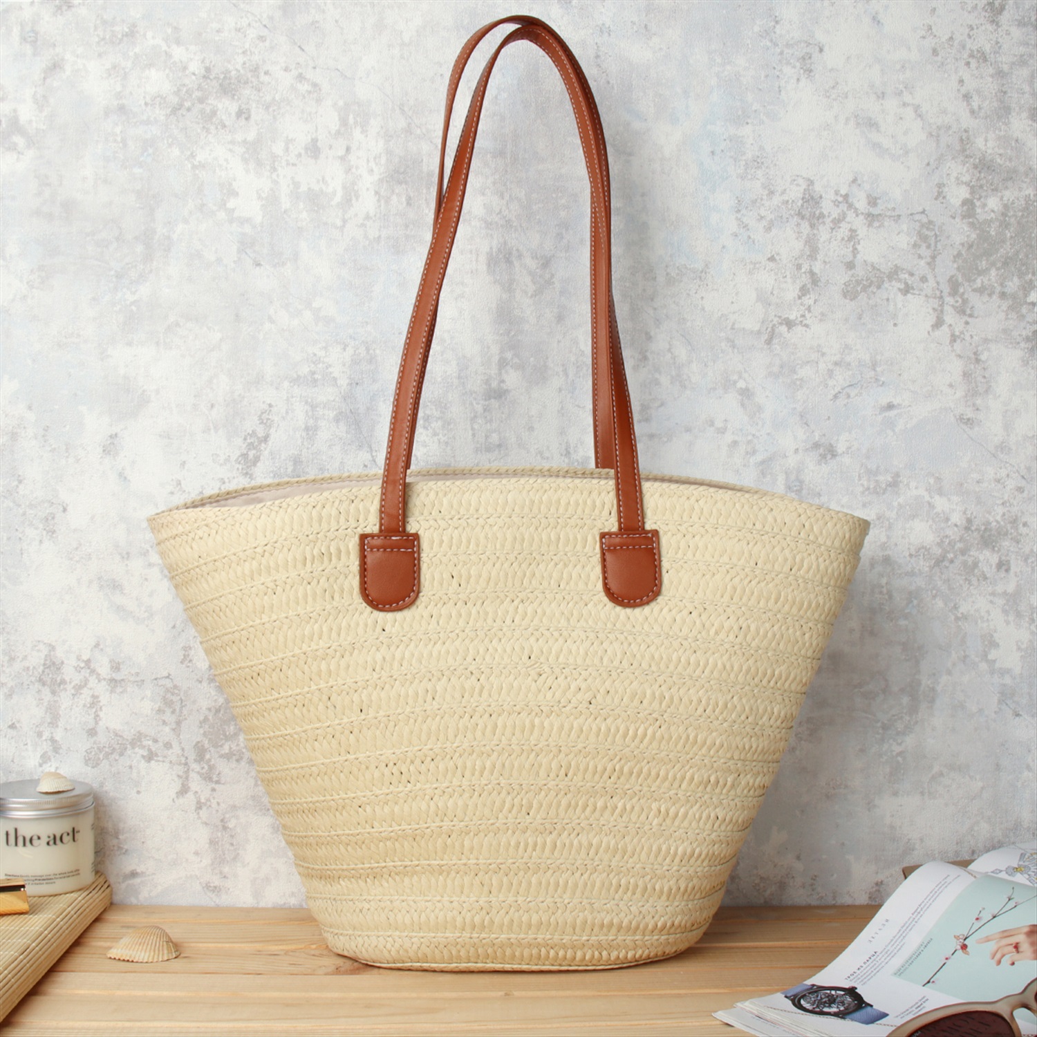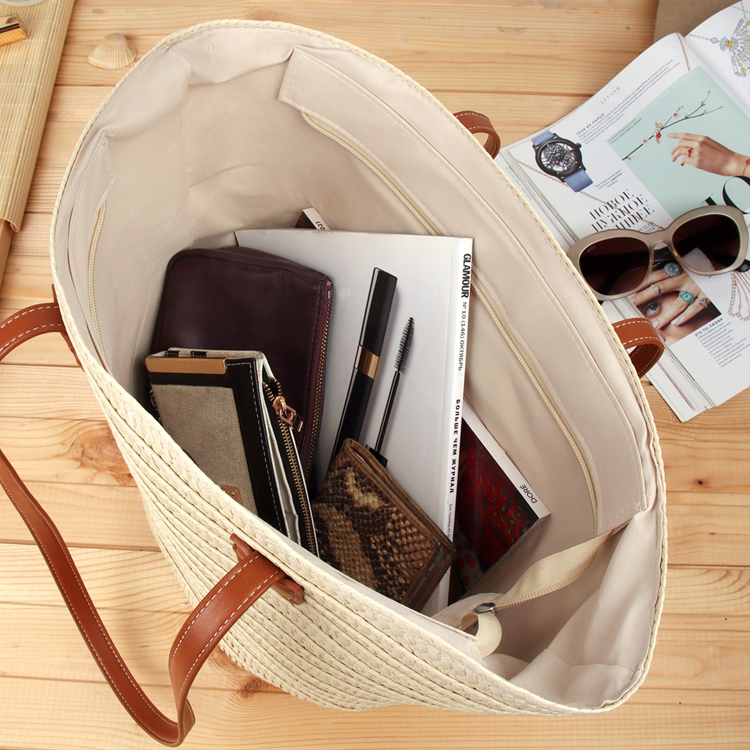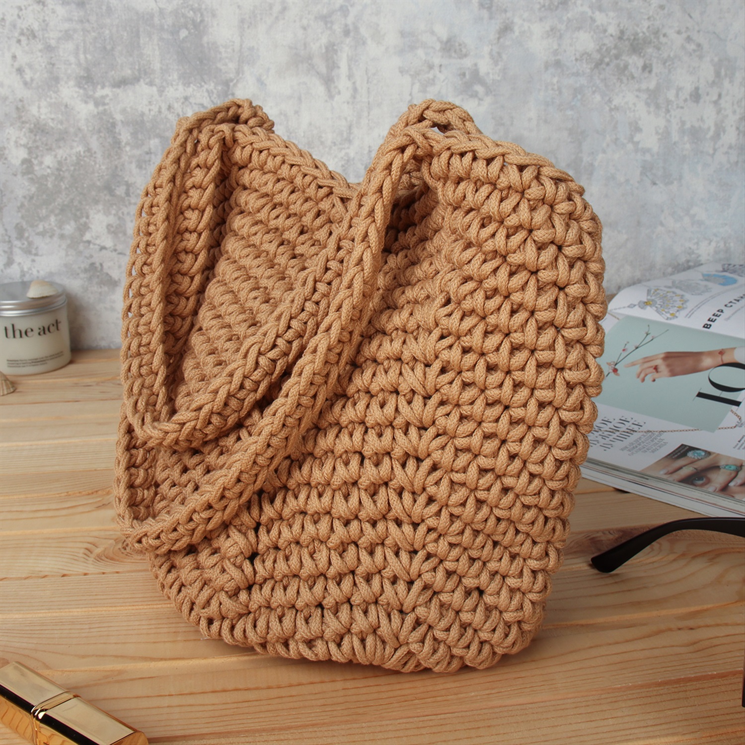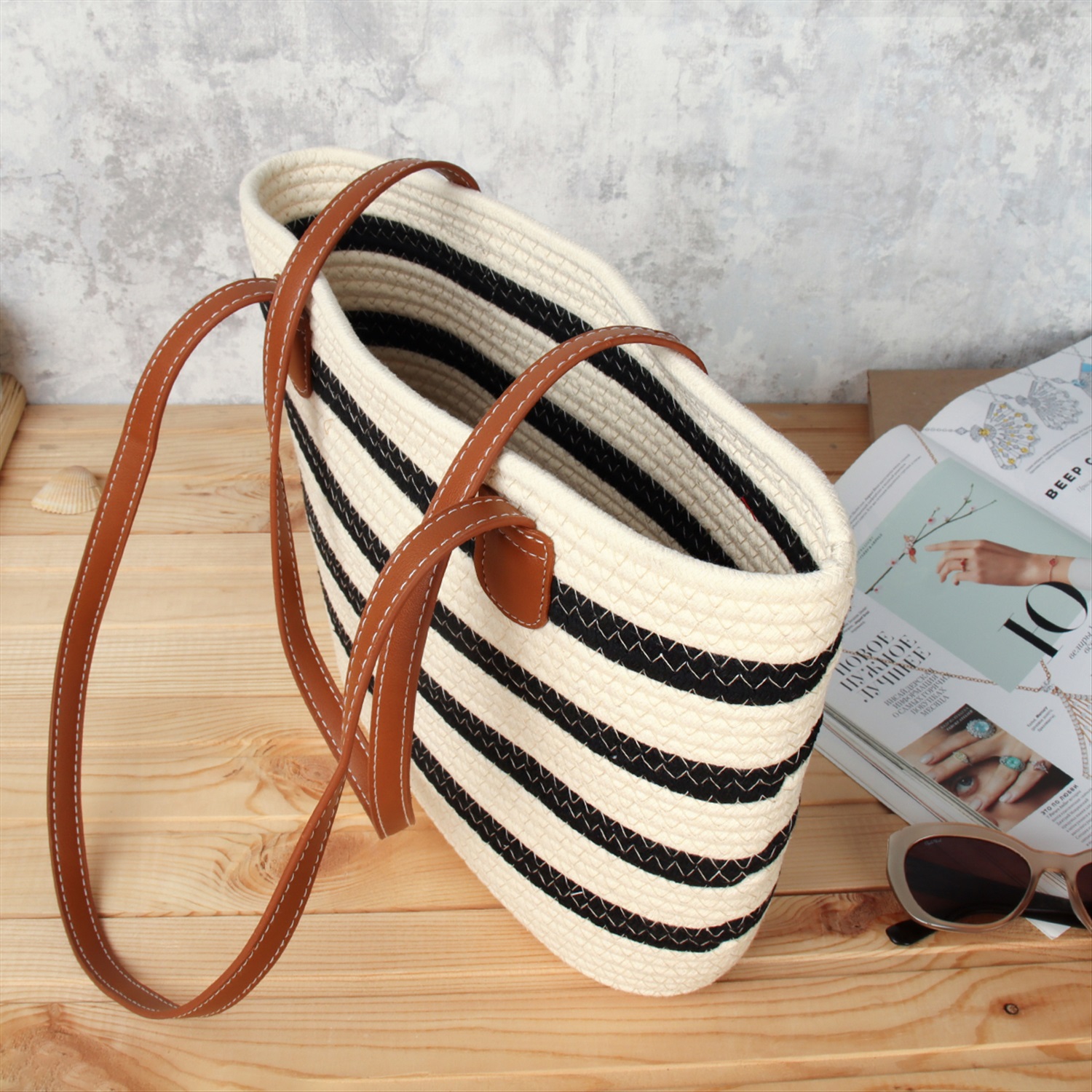 Сумка плетеная 27x43x13 / DW-20 /уп 50/бежевая 6 фото