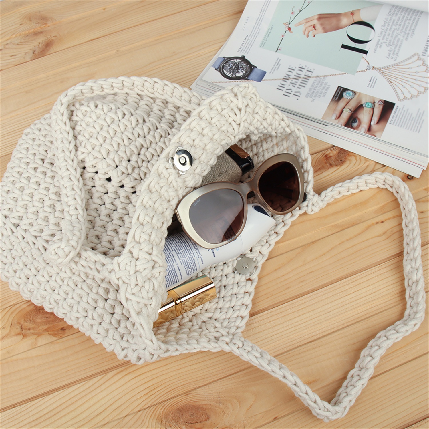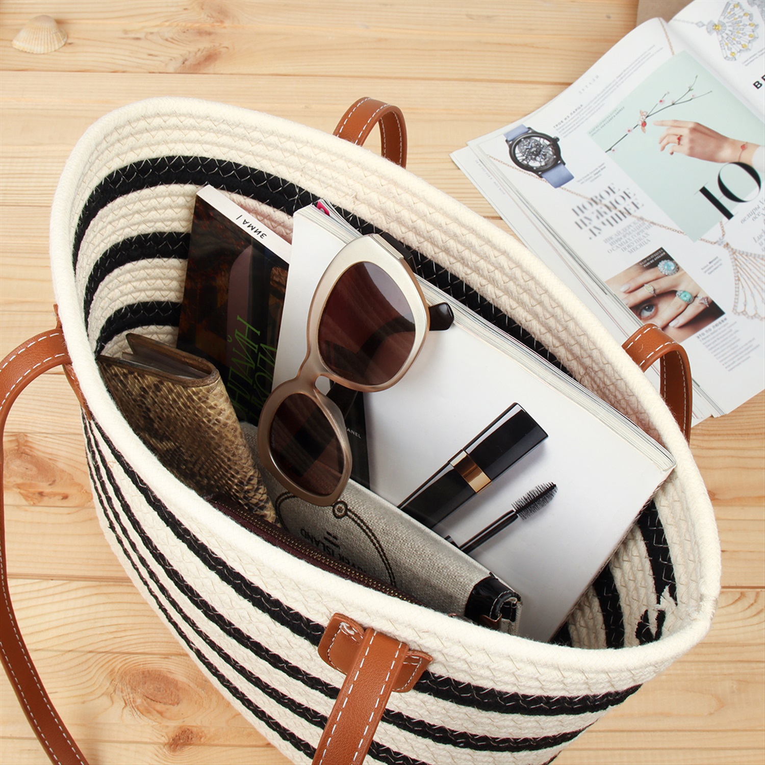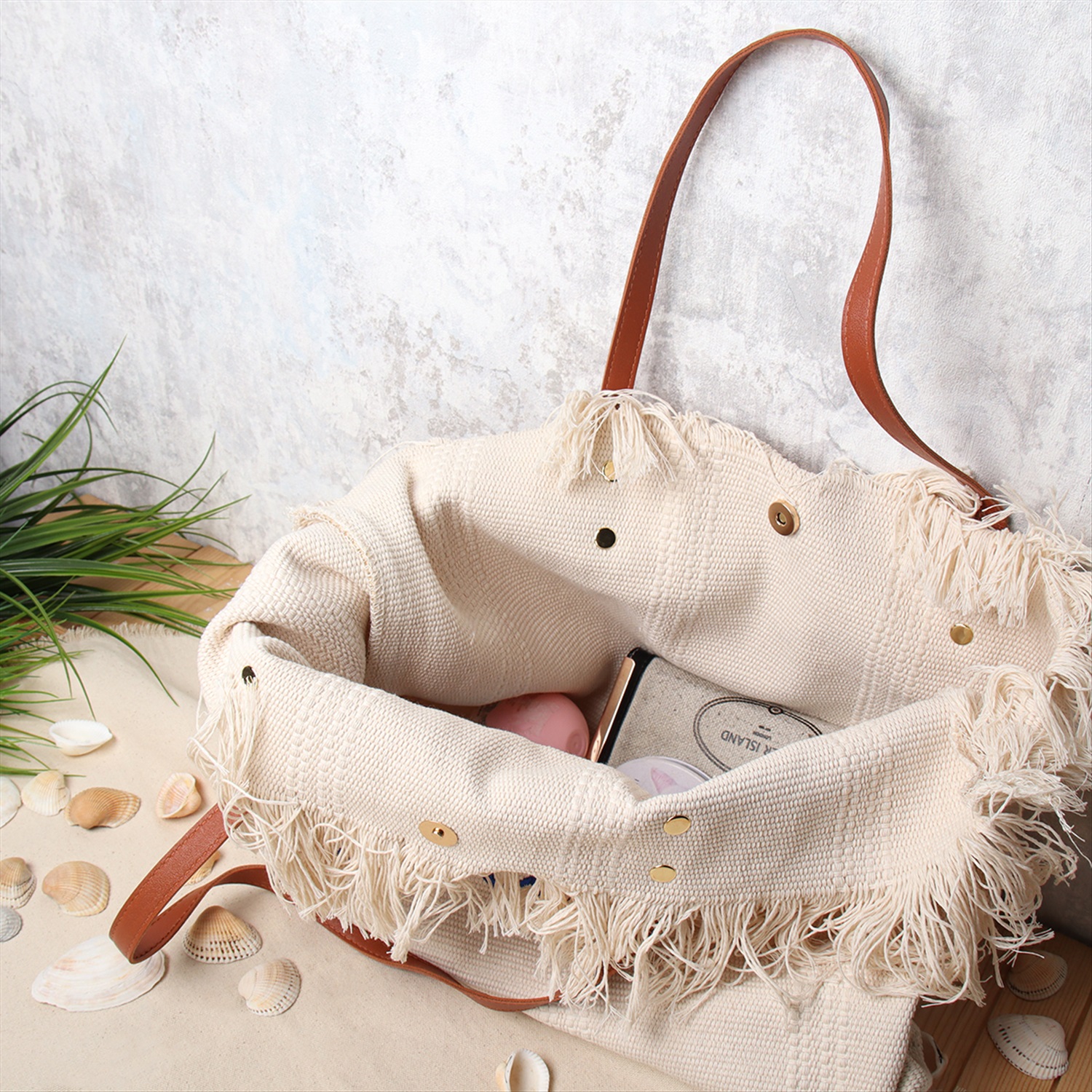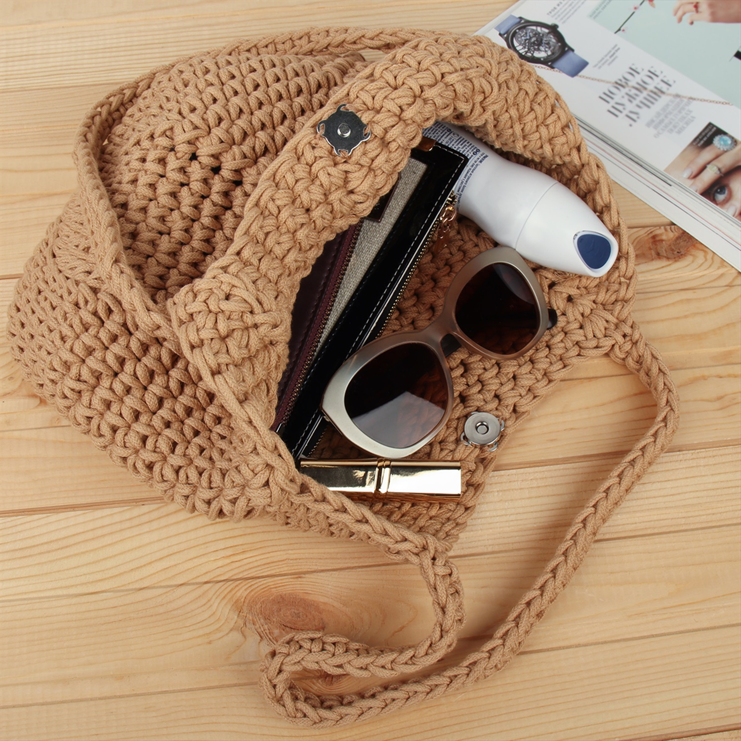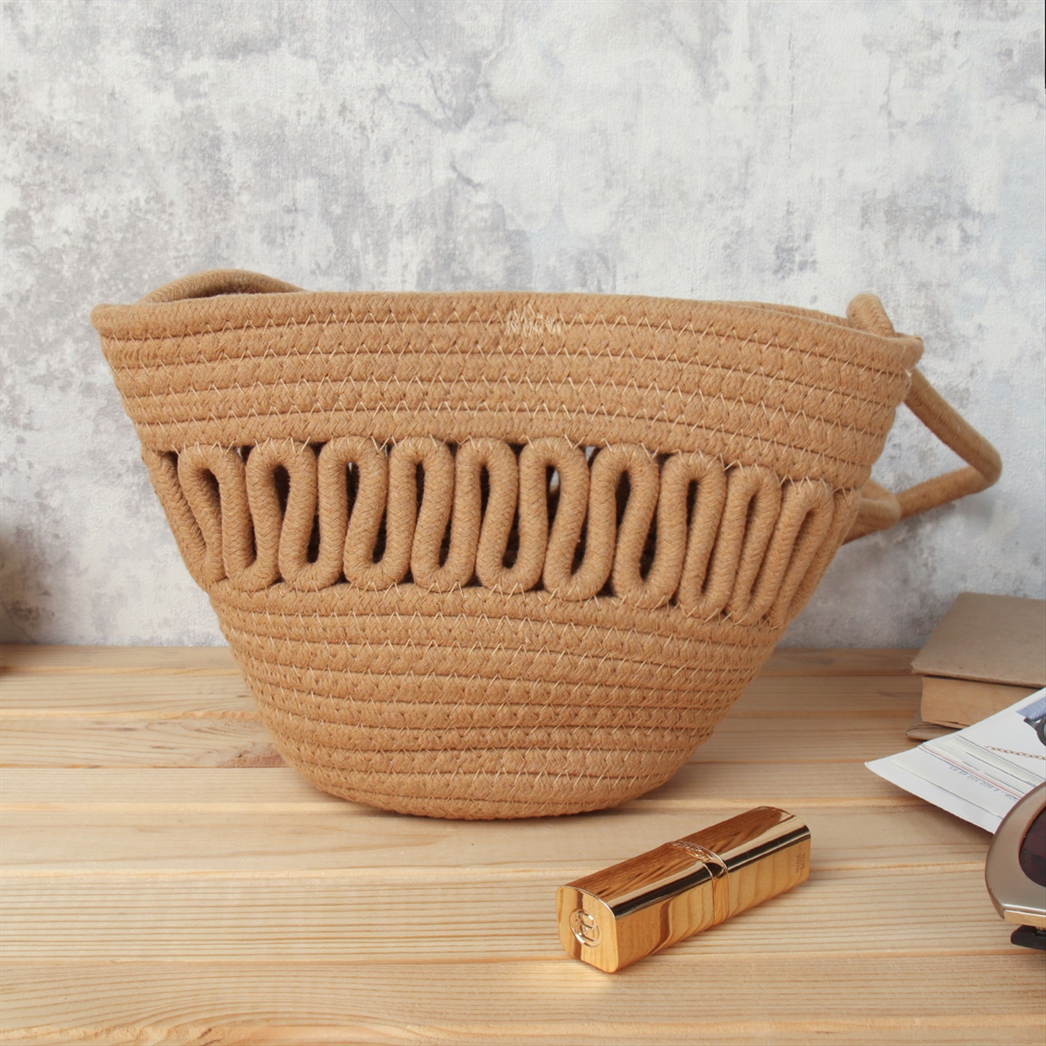 Сумка плетеная 27x43x13 / DW-20 /уп 50/бежевая 6 фото