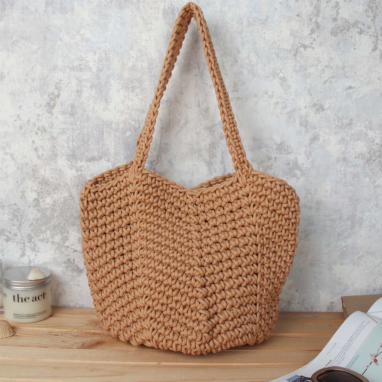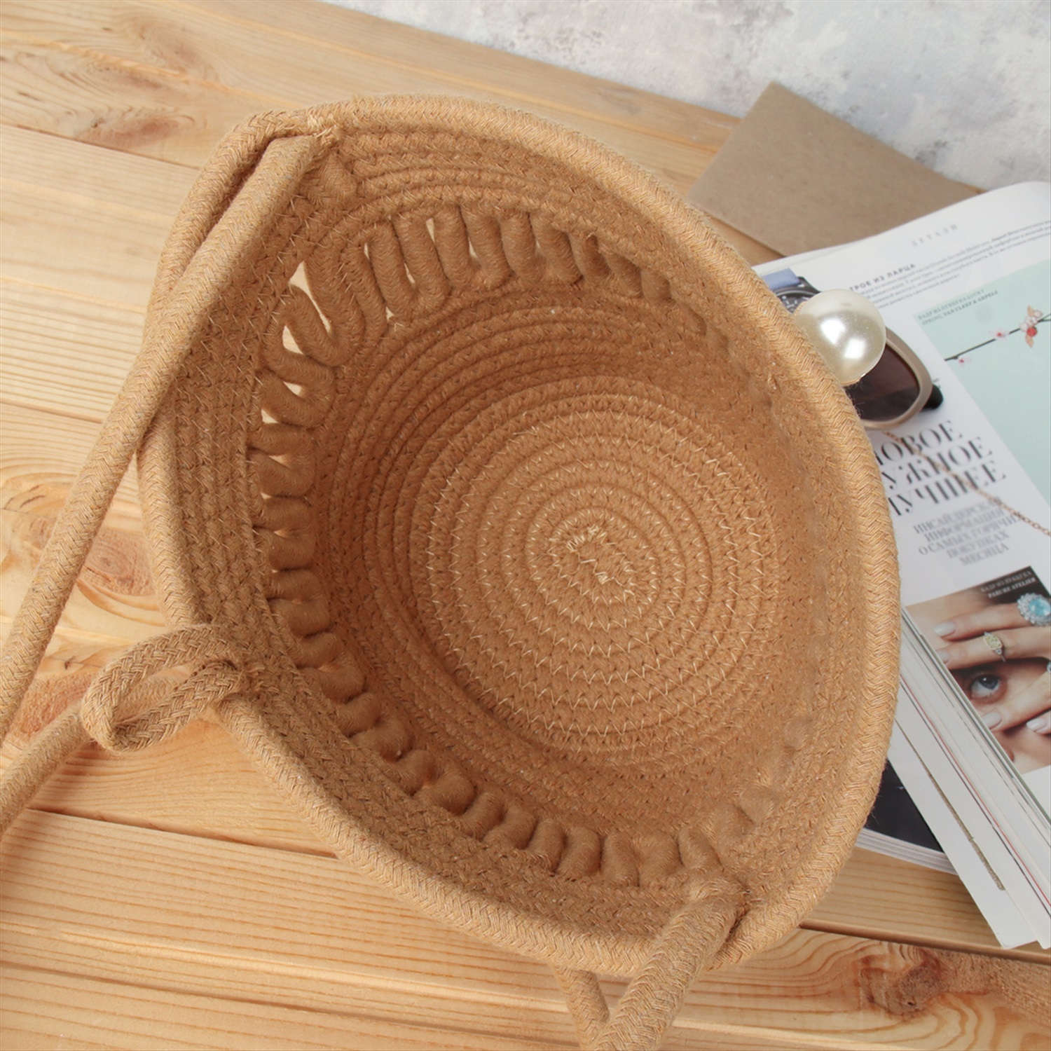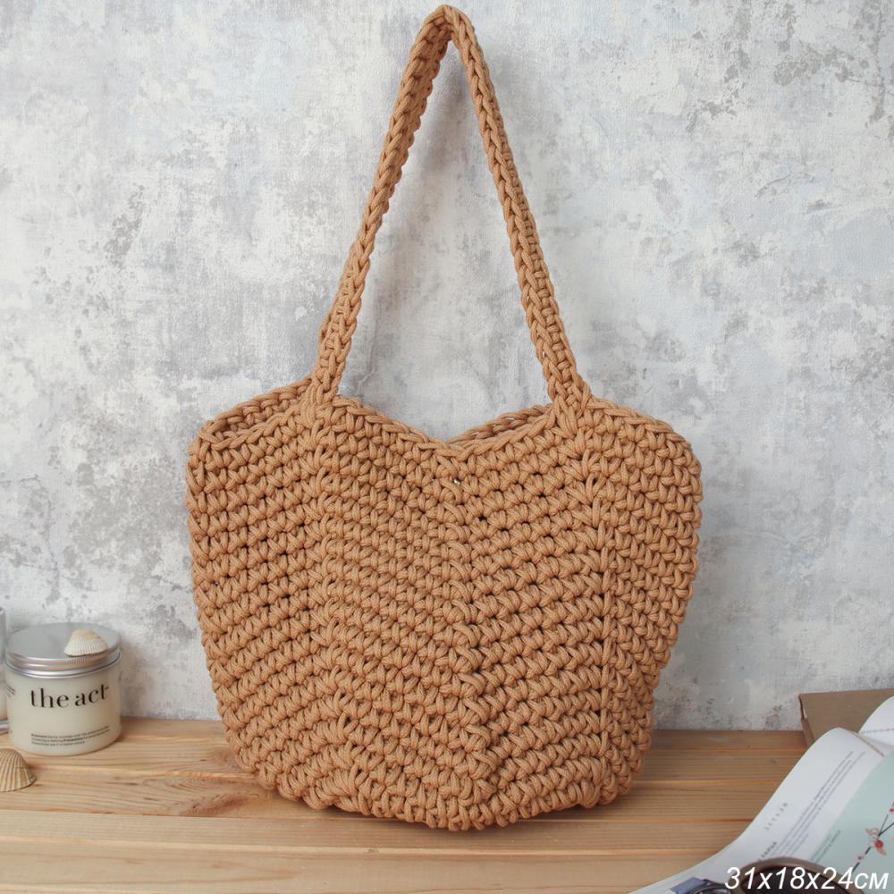 Сумка плетеная шоппер 30x26 / DW-07 /уп 1/коричневая 5 фото