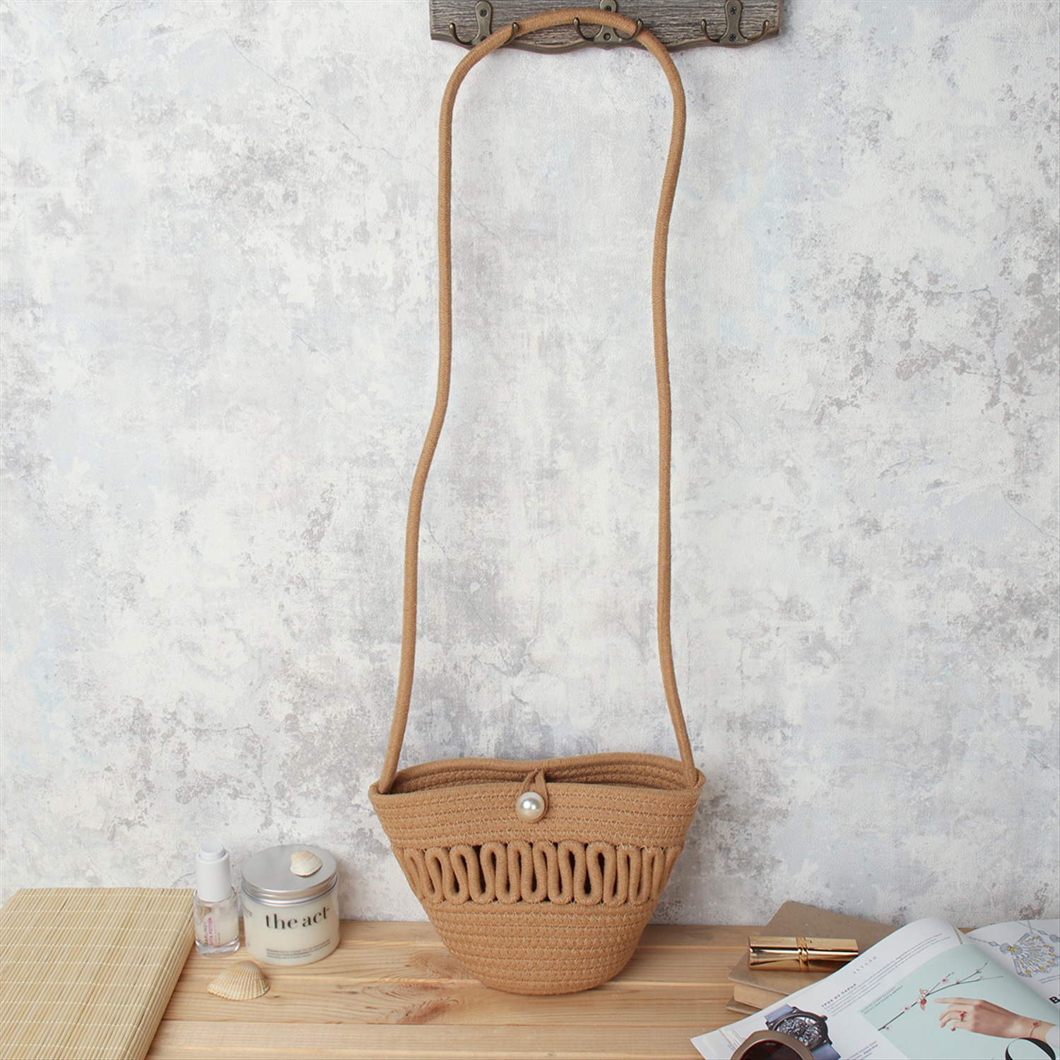 Сумка плетеная 21x15x9 / DW-12 /уп 30/100/бежевая 6 фото
