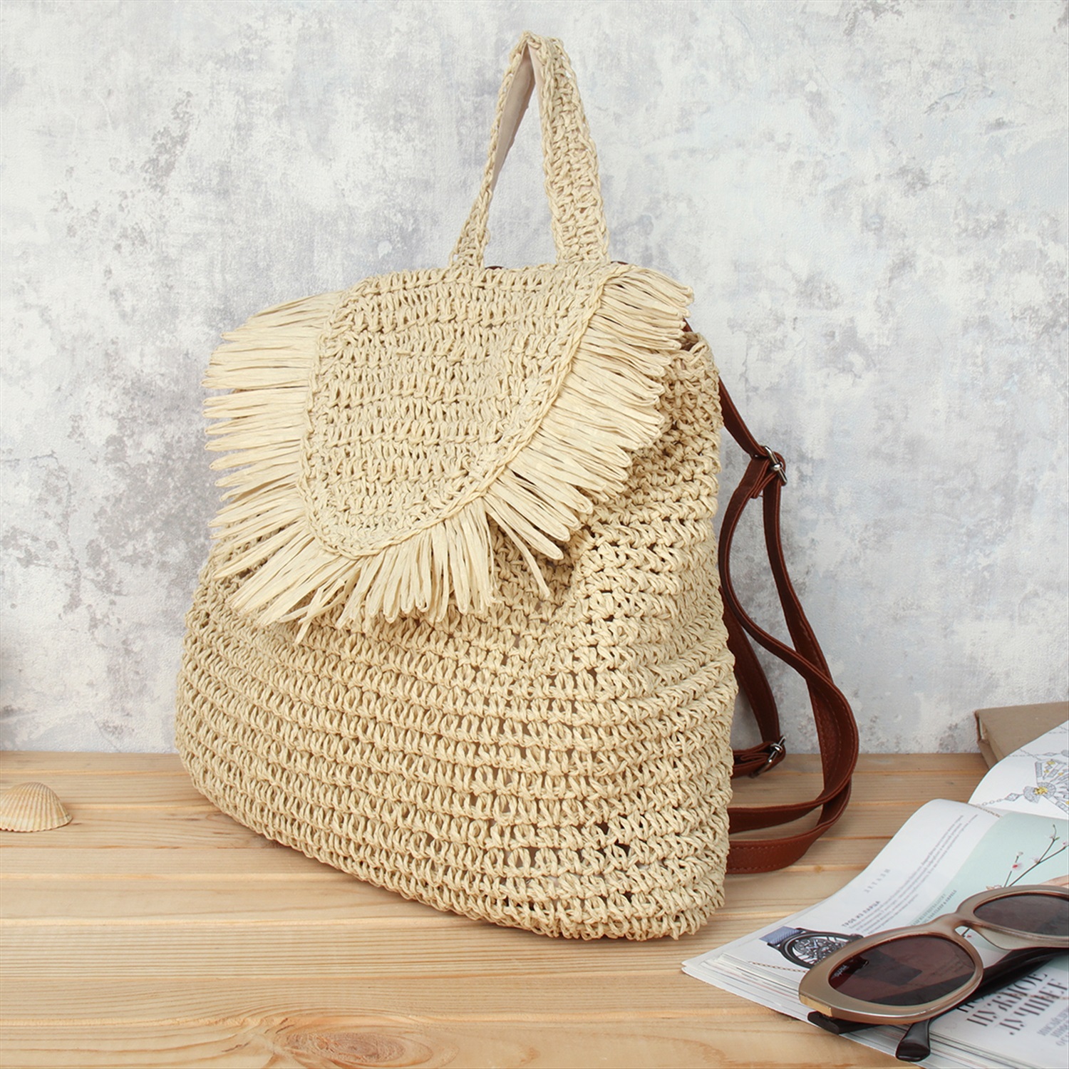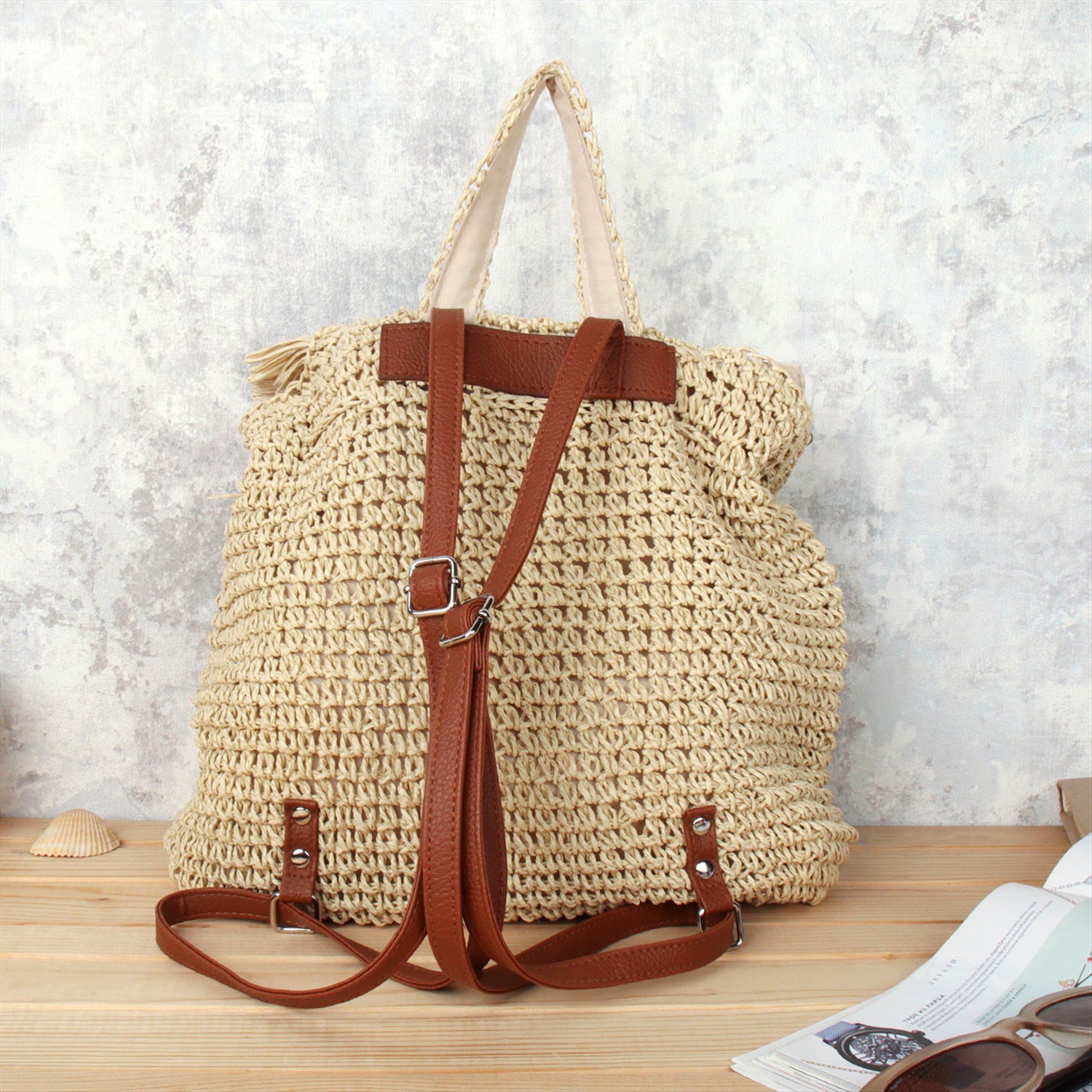 Рюкзак плетеный 30 см / DW-17 /уп 80/бежевый 7 фото