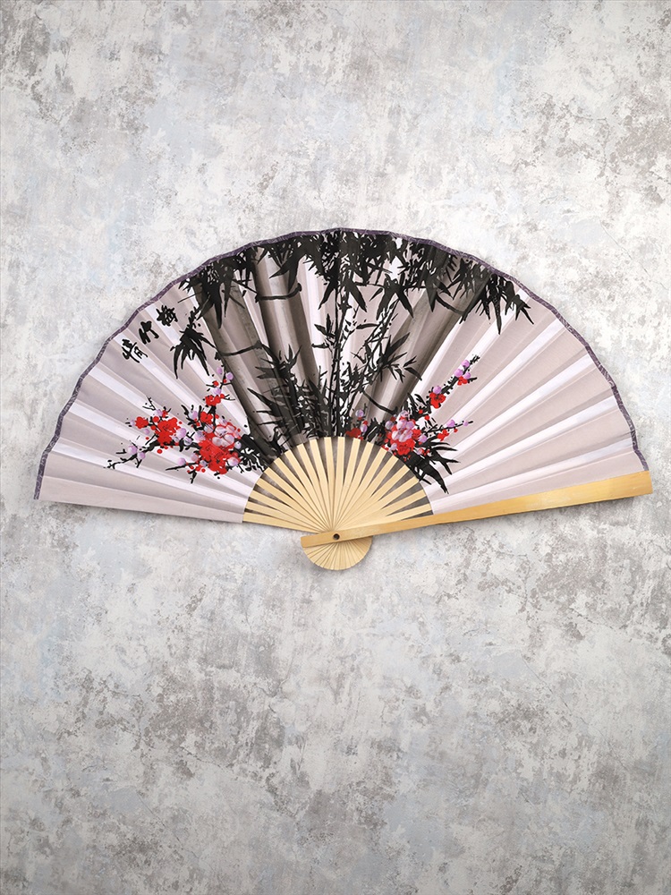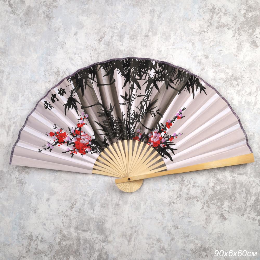 Веер 50 см бамбуковая основа Серый с Цветами / 622-11 /уп 50/200/742903 2 фото