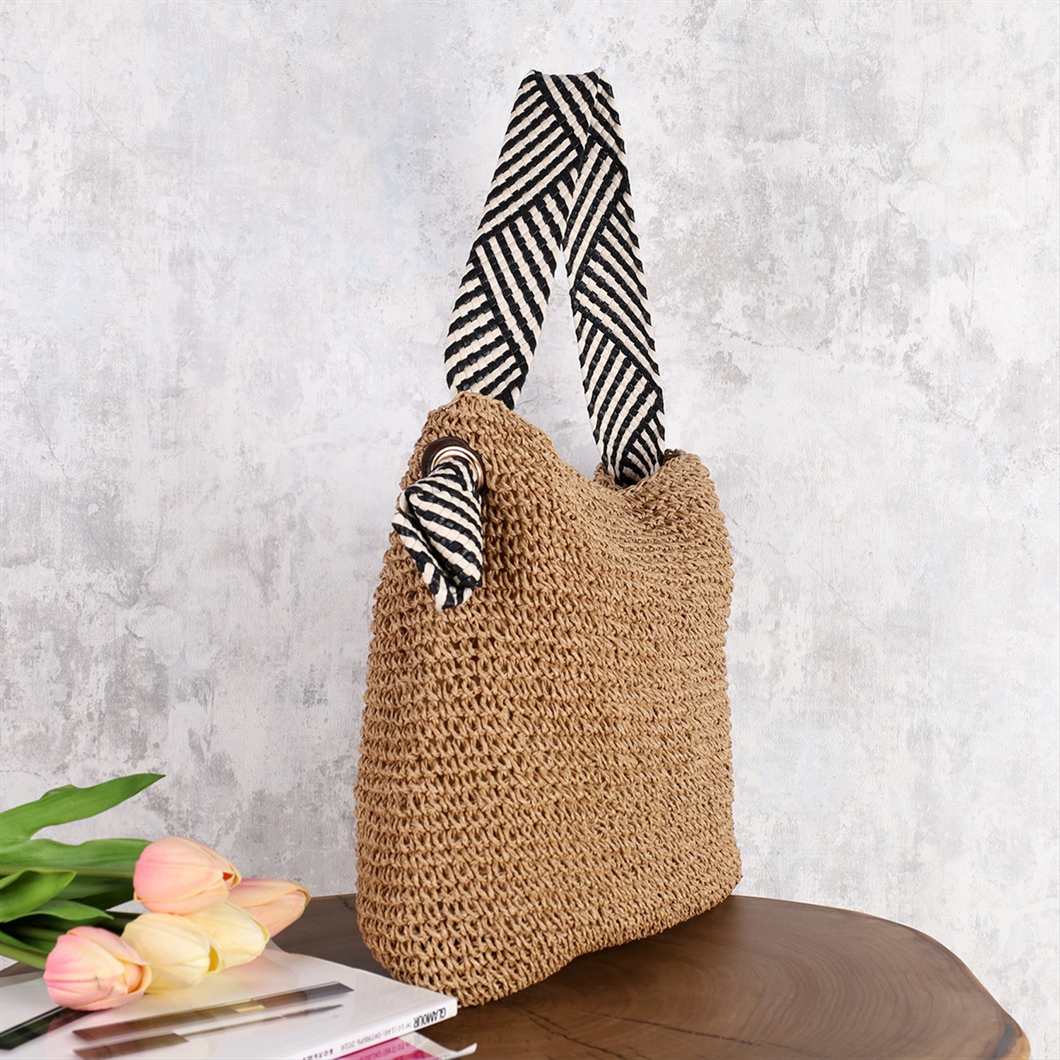 Сумка плетеная 45x29x16x26 / DW-08 /уп 50/коричневая 3 фото