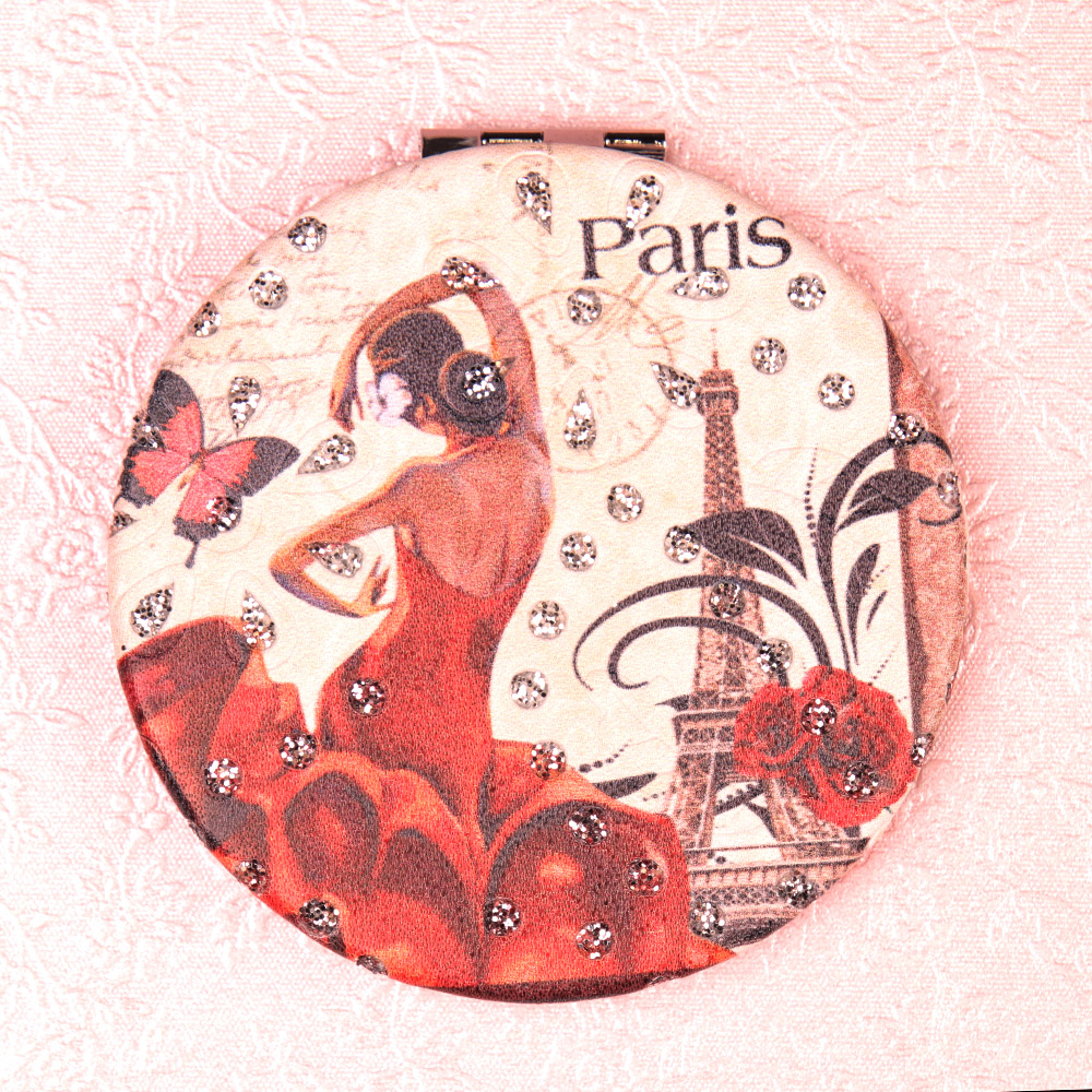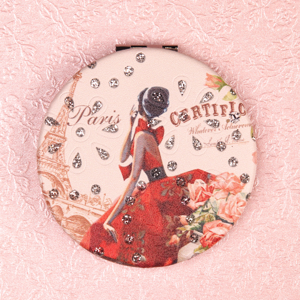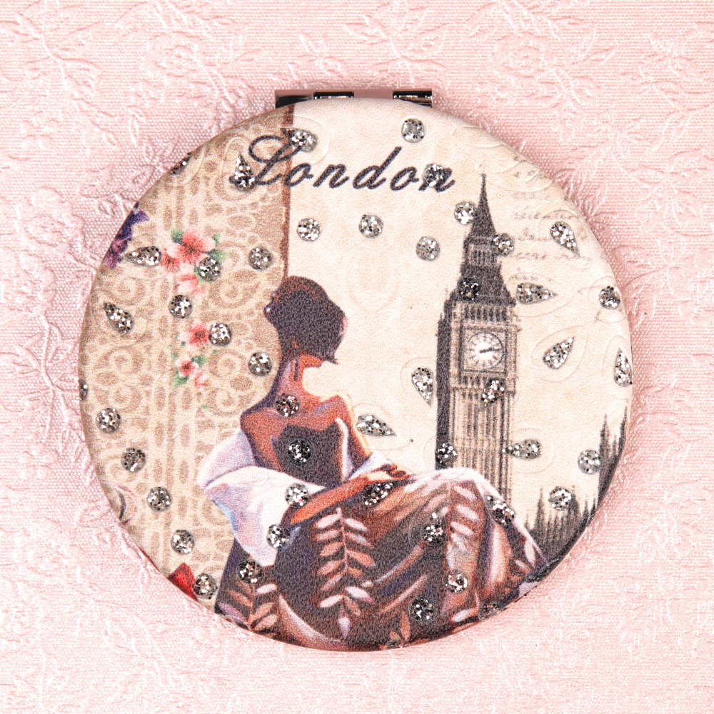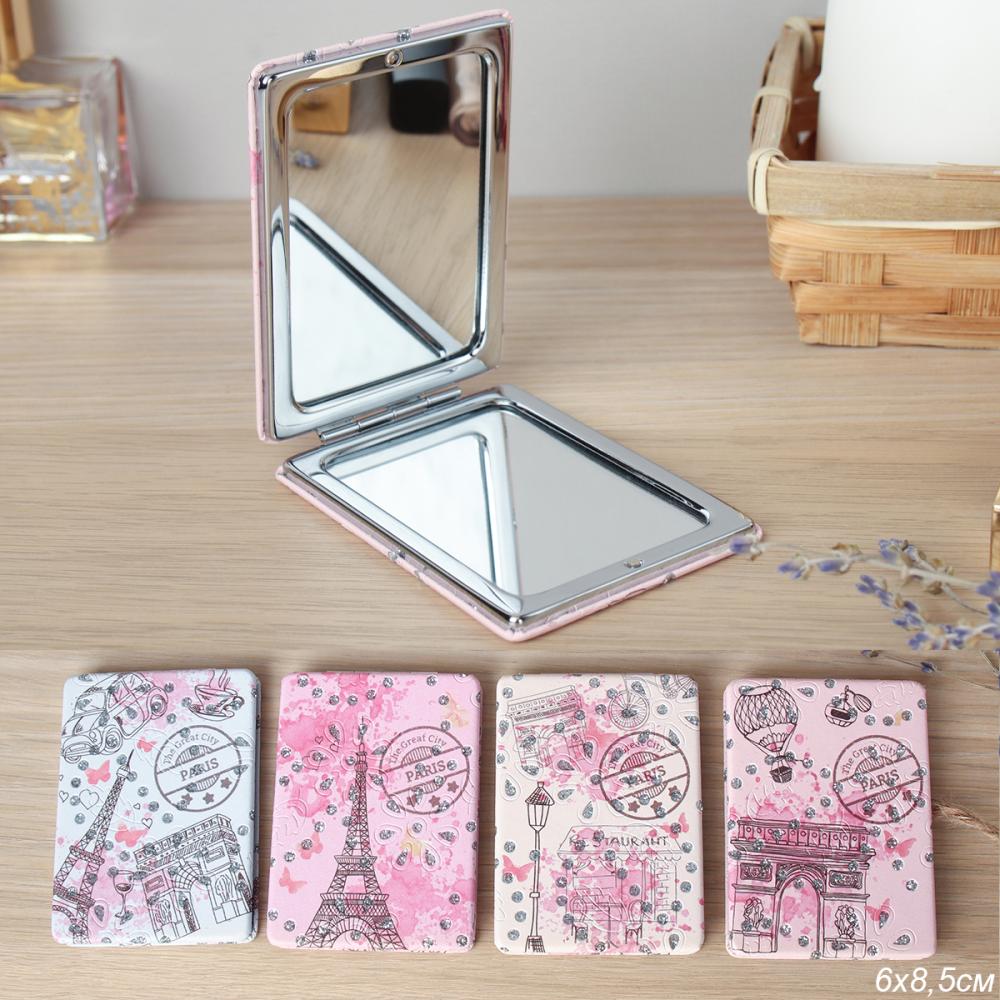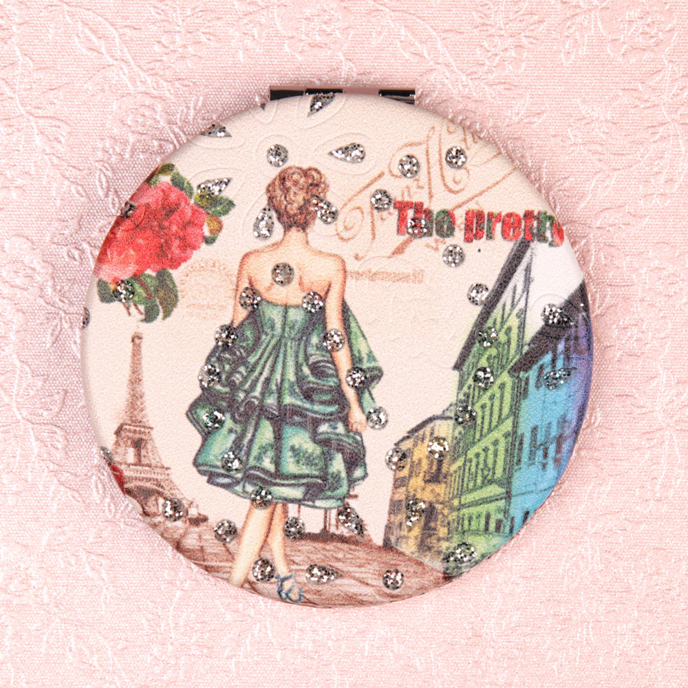 Зеркало карманное 6х8,5 см / GT354 /уп 50/300/ кожзам, стразы микс 7 фото