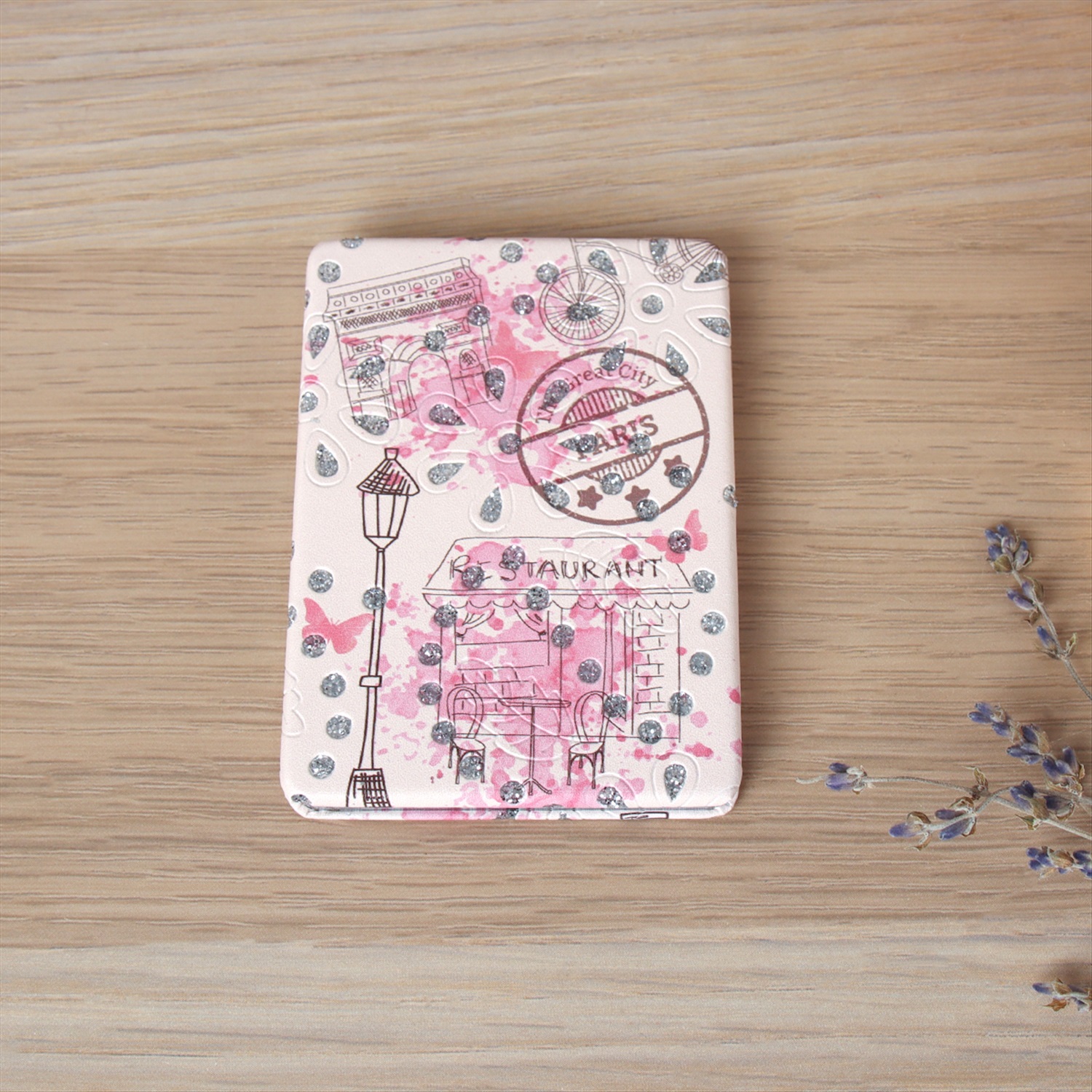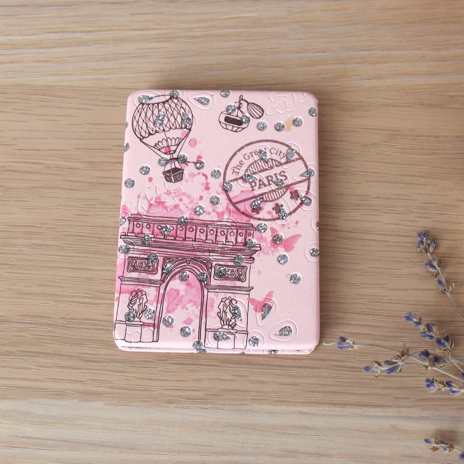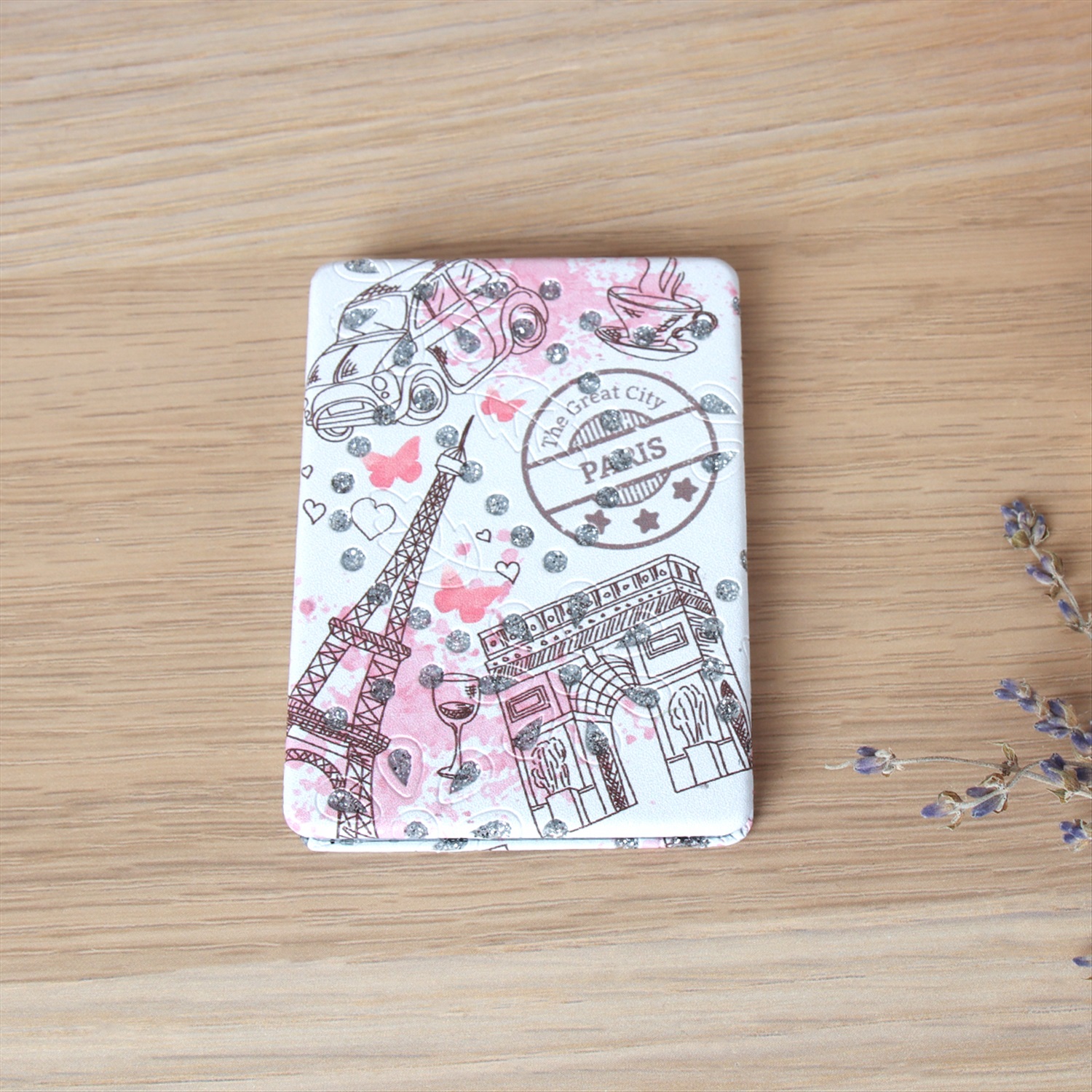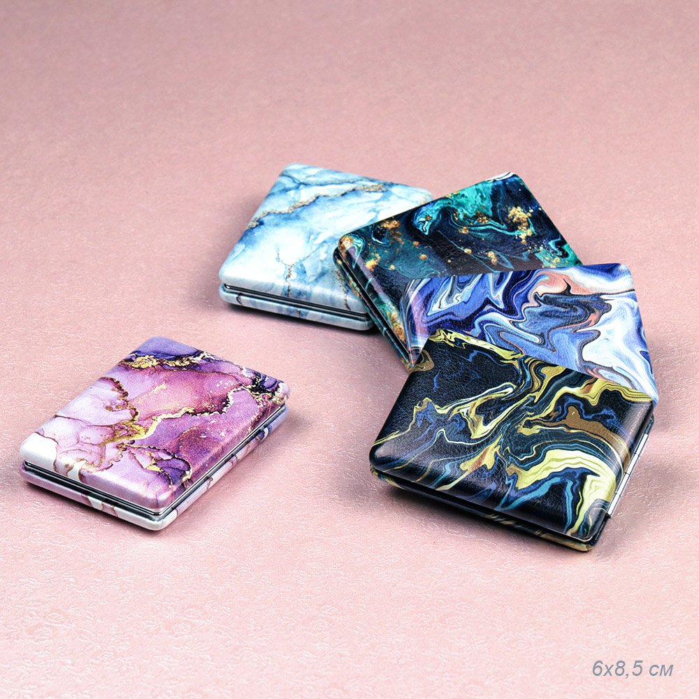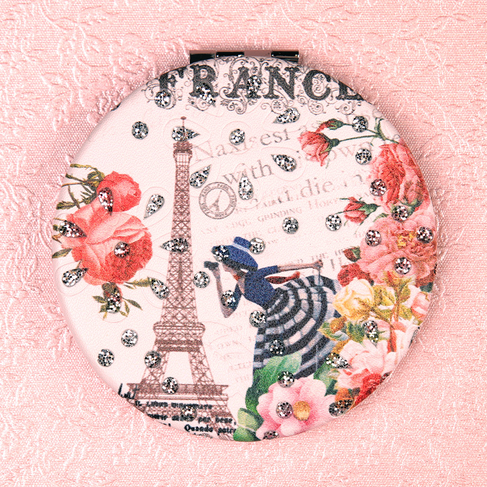 Зеркало карманное 6х8,5 см / GT354 /уп 50/300/ кожзам, стразы микс 7 фото