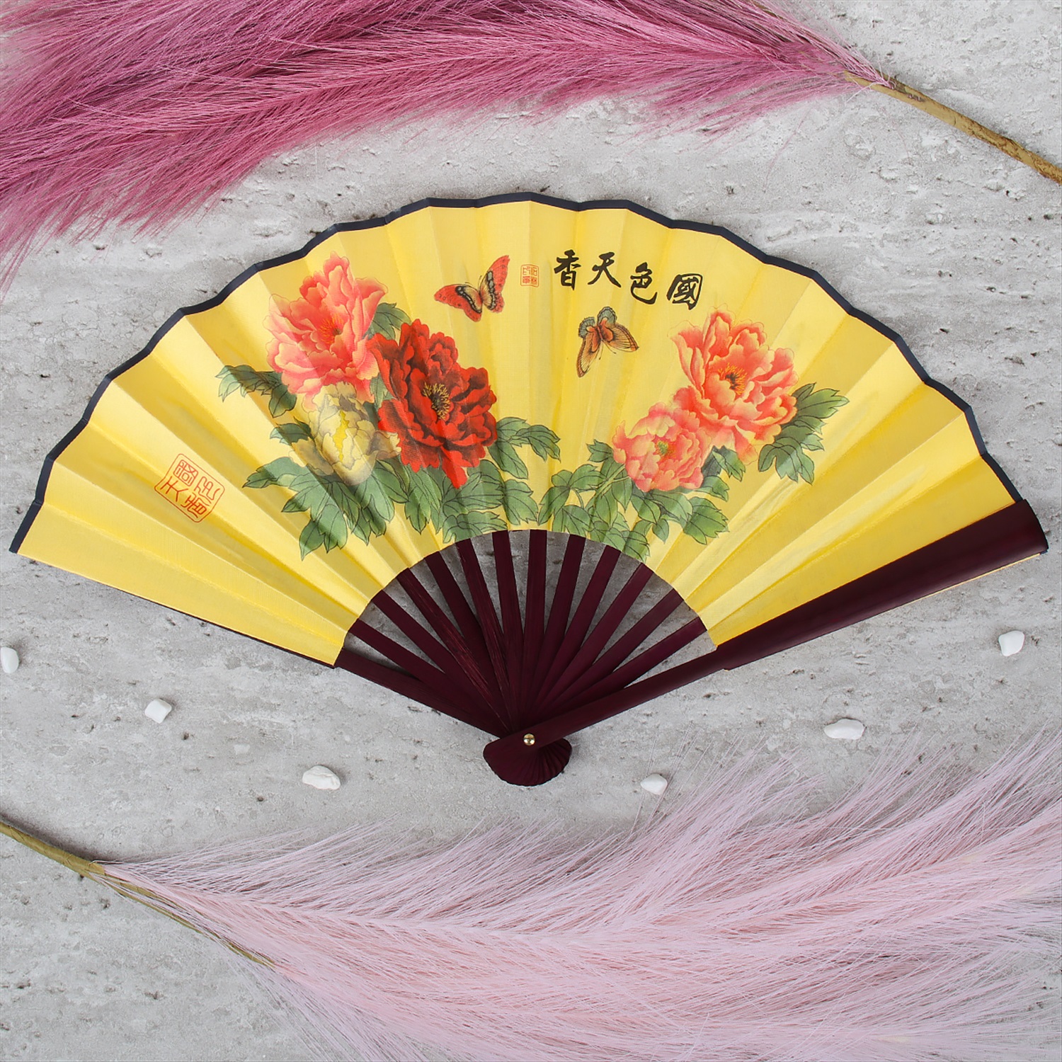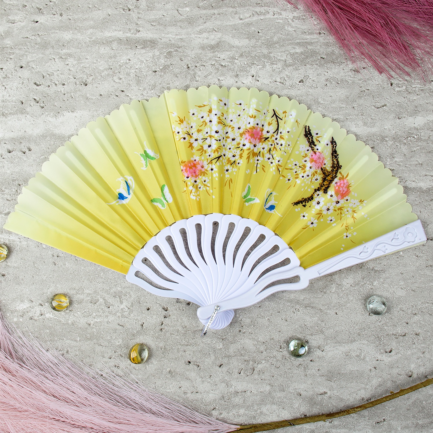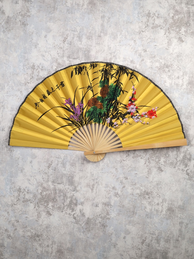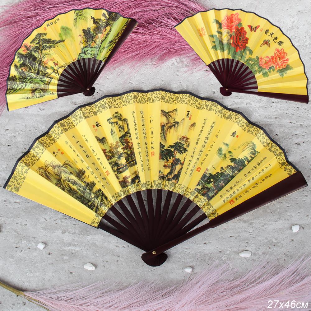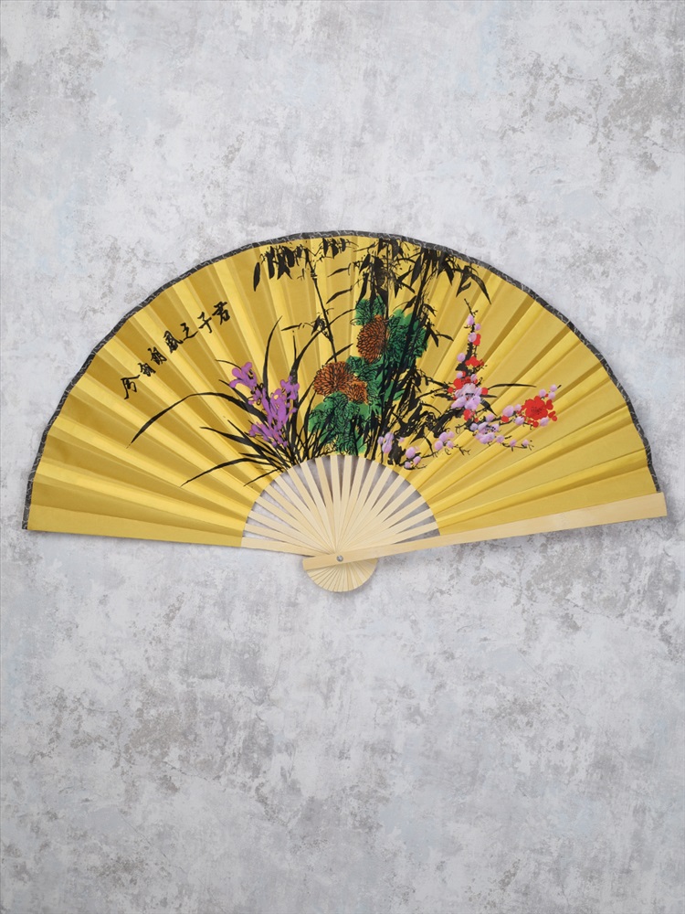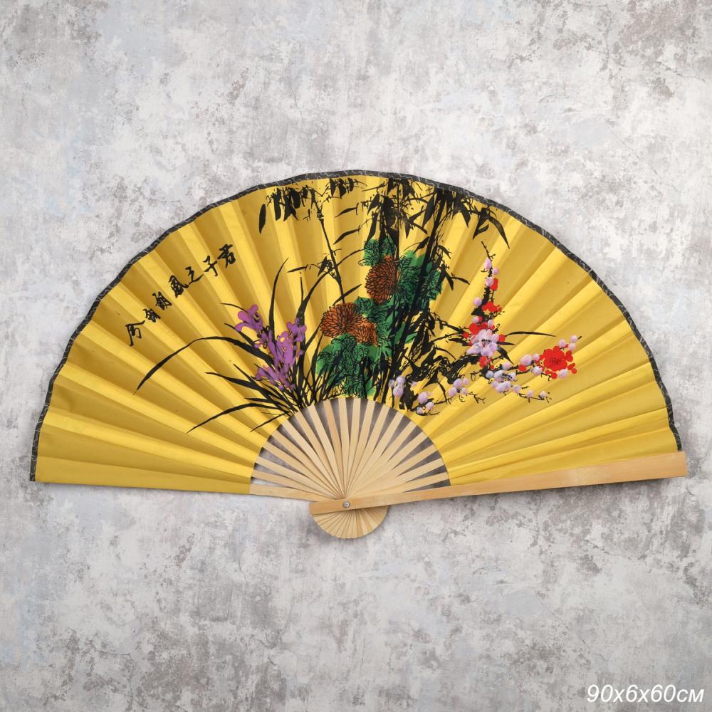 Веер 50 см бамбуковая основа Желтый с Цветами / 622-11 /уп 50/200/742903 2 фото