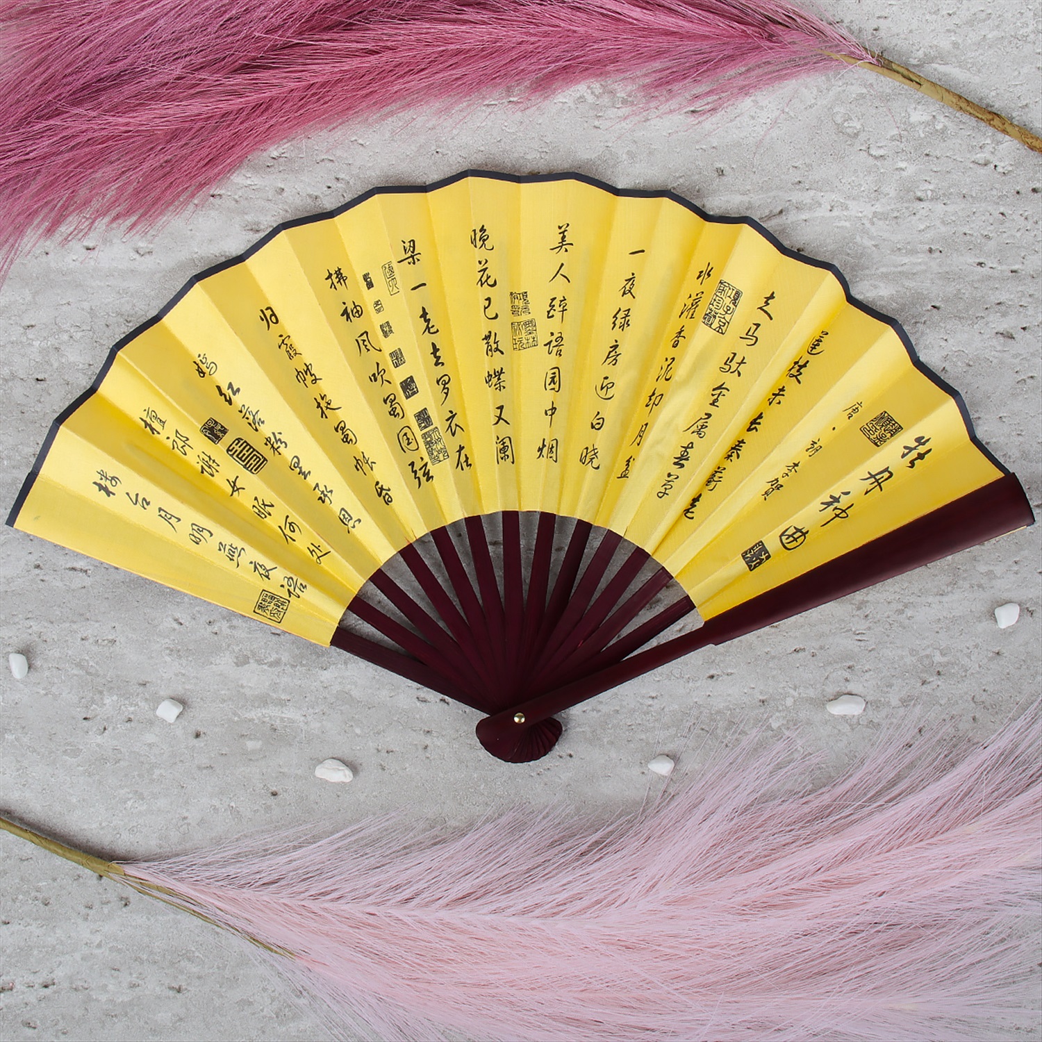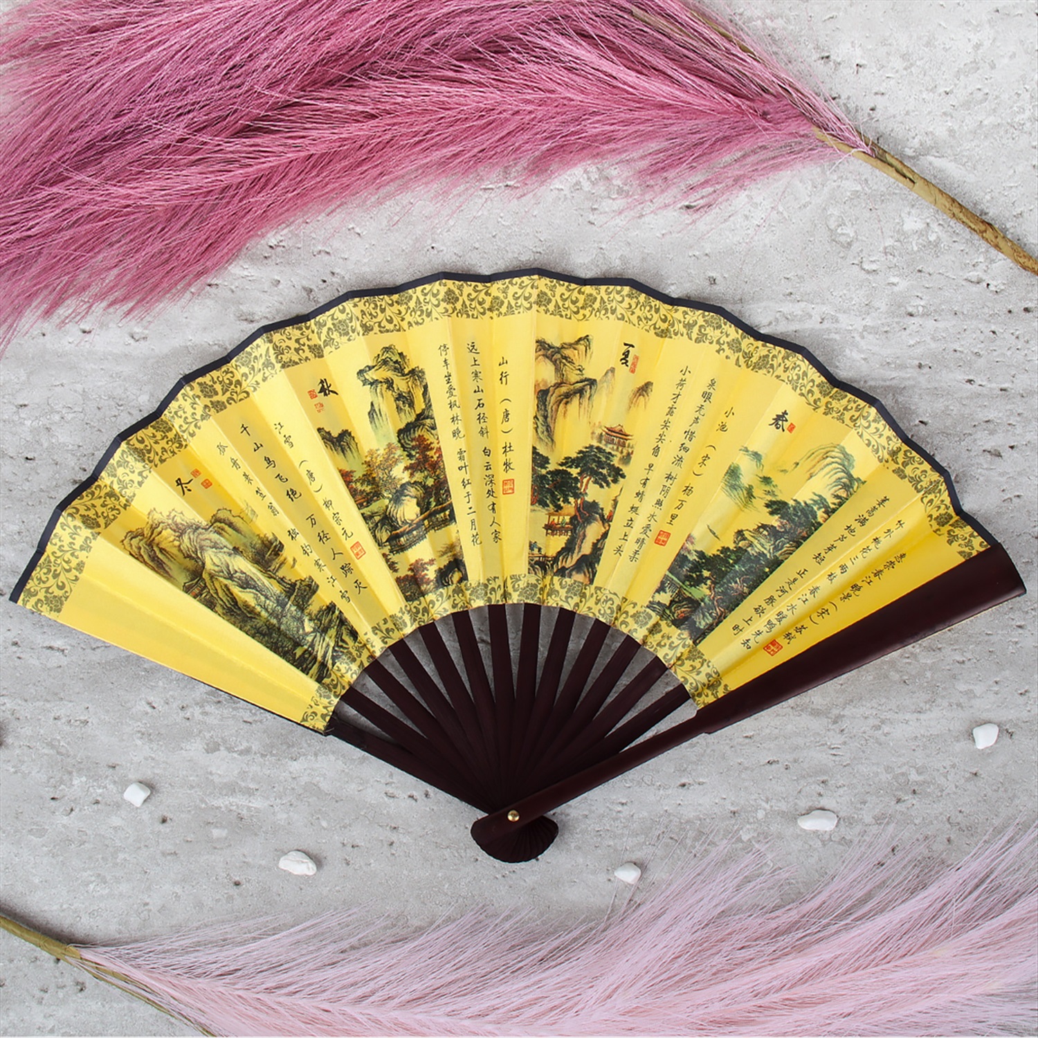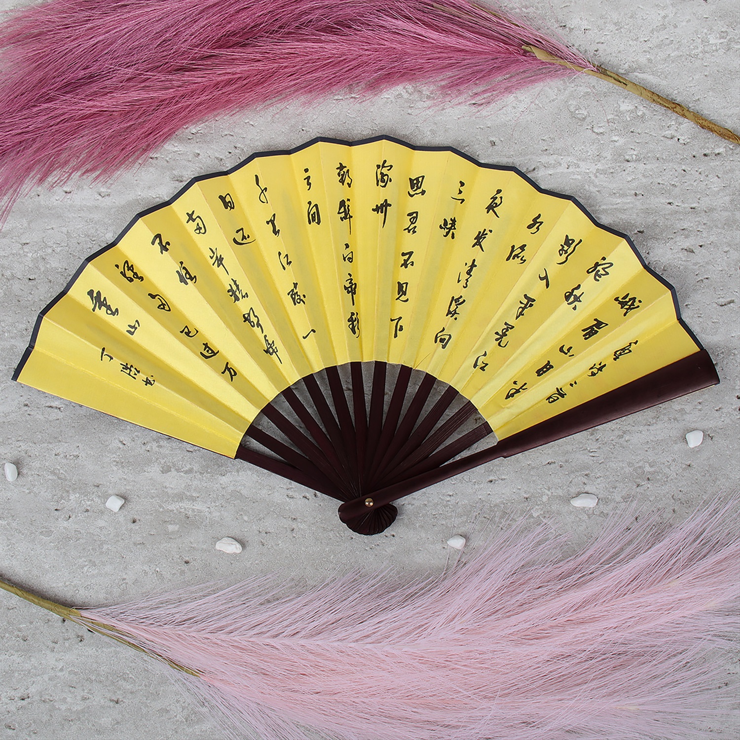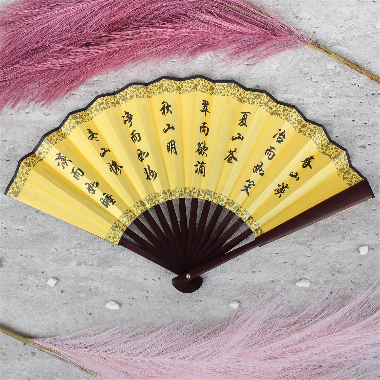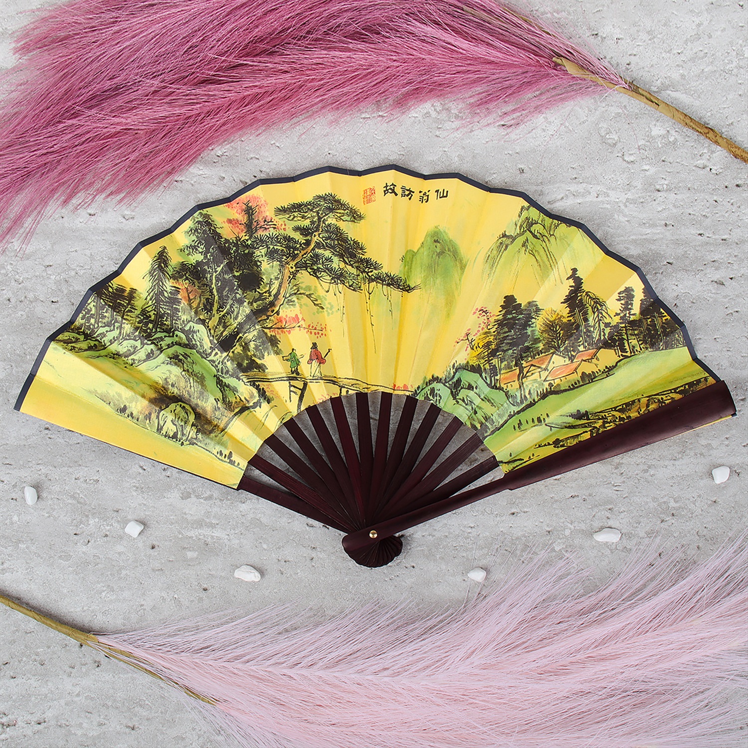 Веер 50 см бамбуковая основа Желтый с Цветами / 622-11 /уп 50/200/742903 2 фото