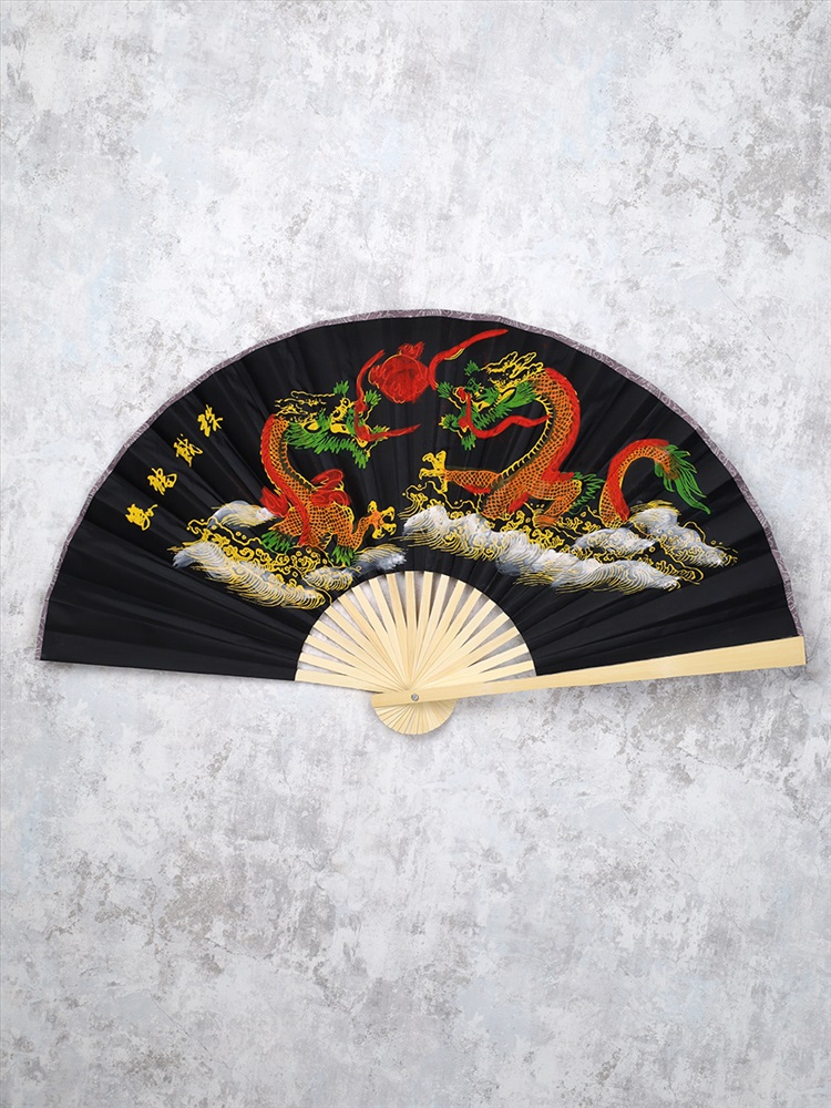 Веер 50 см бамбуковая основа Черный с Драконами / 622-11 /уп 50/200/ 7 фото
