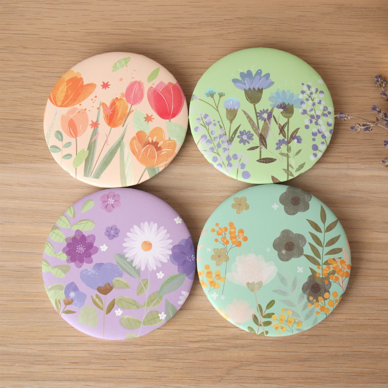 Зеркало карманное 7 см Цветы / PJ-8 /уп 12/480/ 7 фото