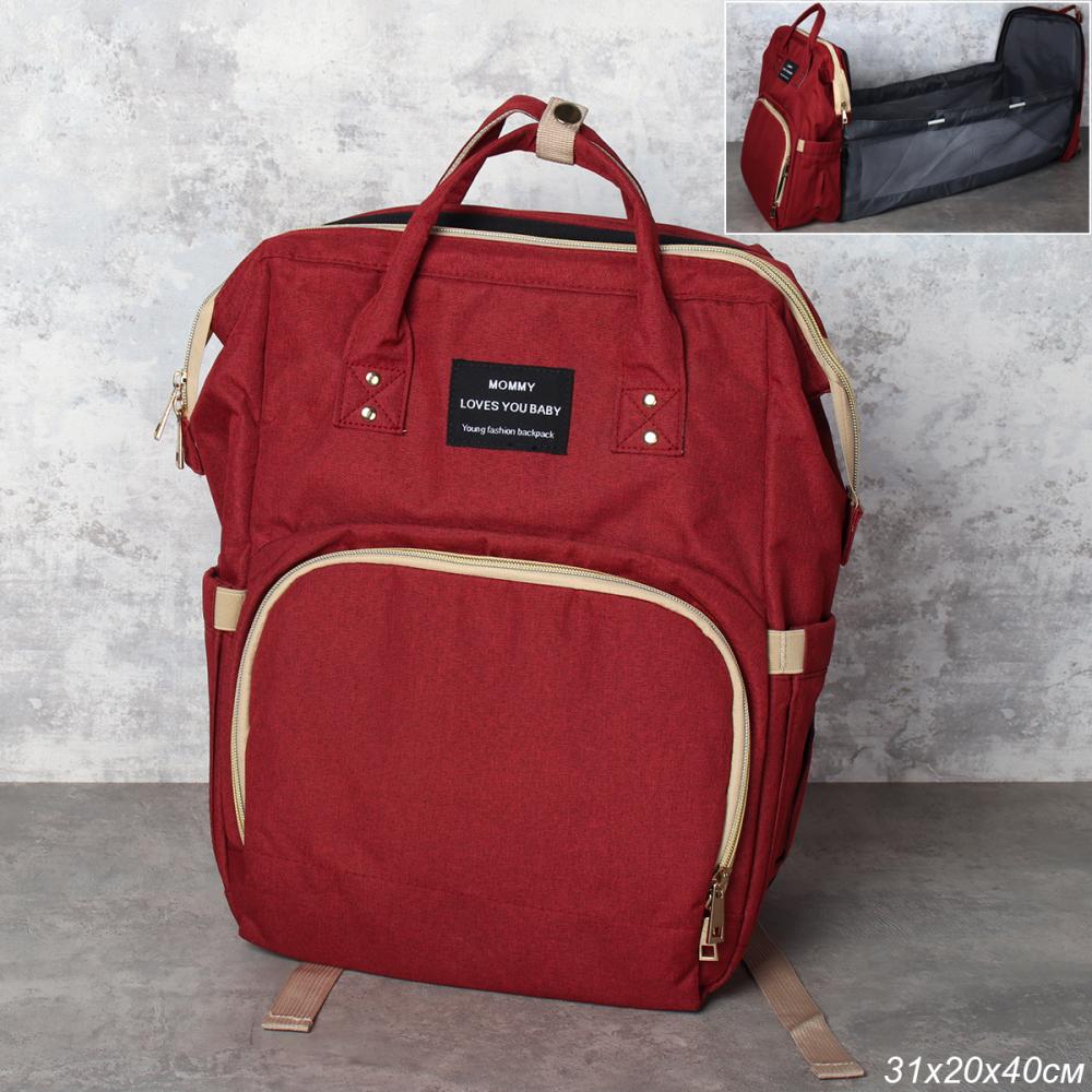 Рюкзак женский для мам, сумка на коляску для прогулок 31х20х40 см бордовая / MX-2 /трансформер 5 фото