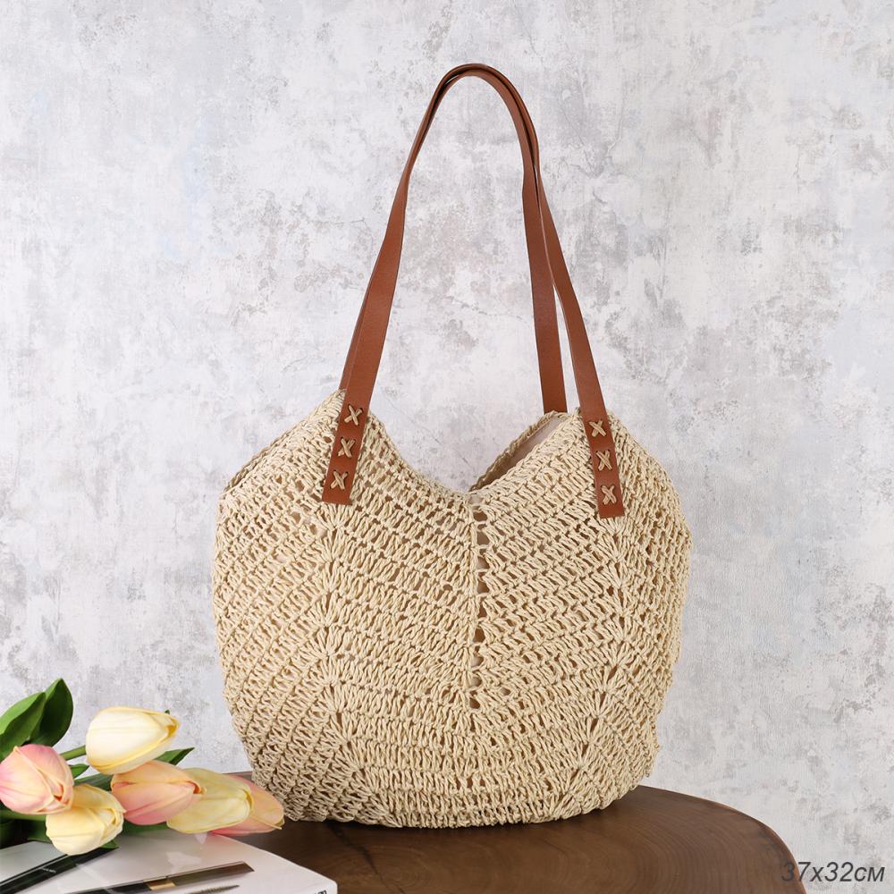 Сумка плетеная 36x32x16 / DW-18 /уп 30/бежевая 4 фото