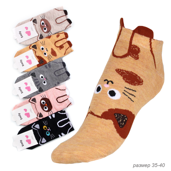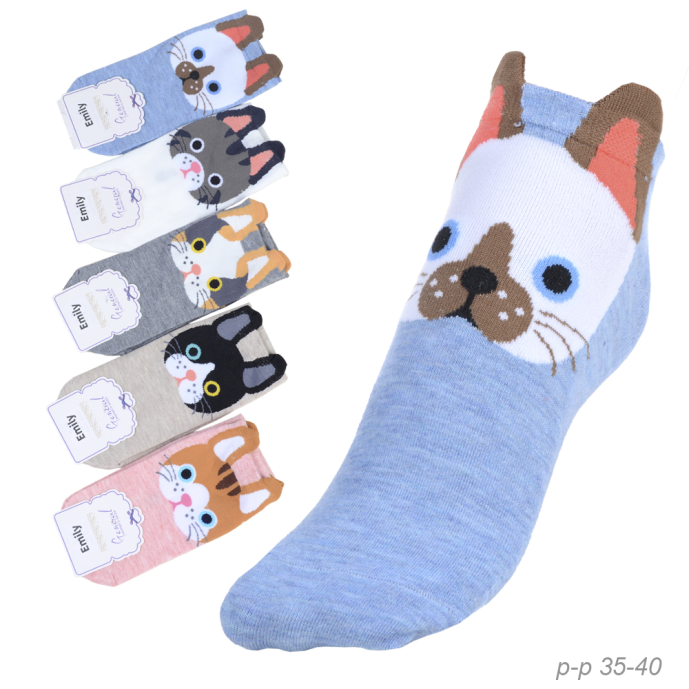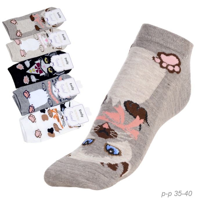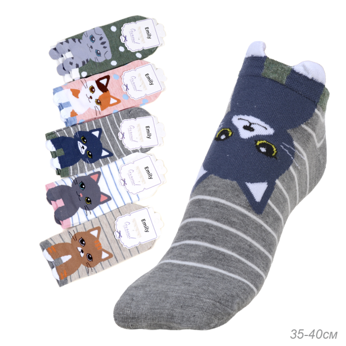 Носки р. 35-40 Кошка короткие / L810 /уп 10/500/1200 / ОДНА ПАРА/ МАРКА