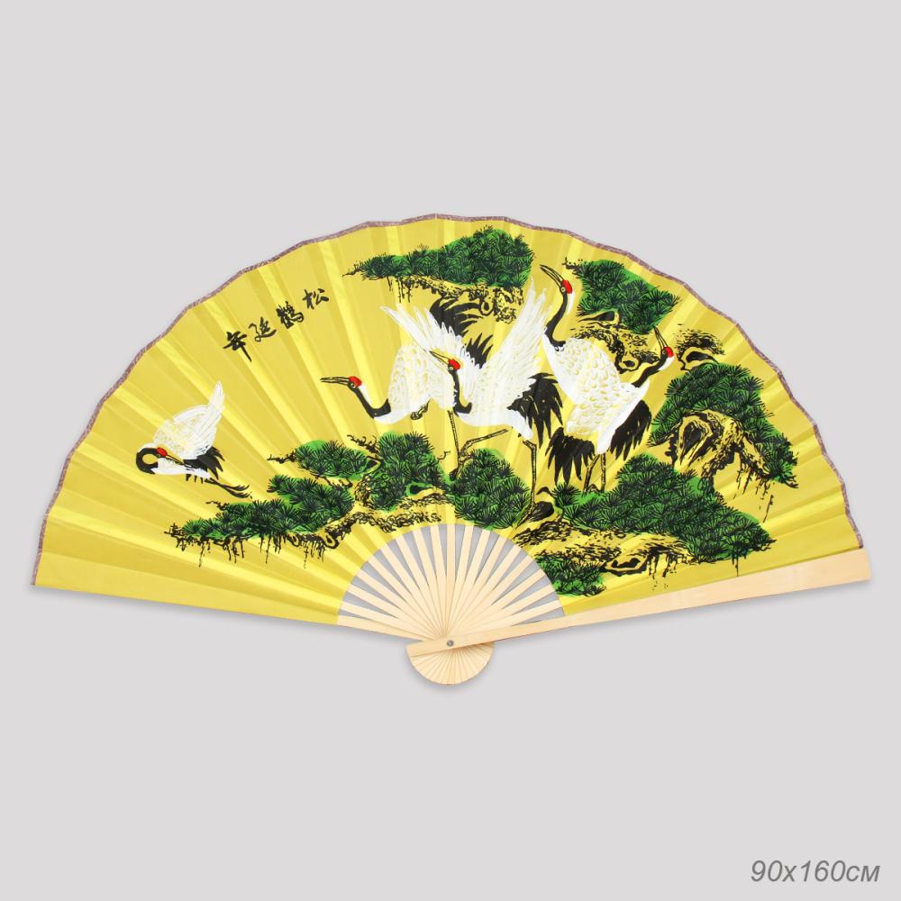 Веер 63 см бамбуковая основа Салатовый с Птицами / 622-12 /уп 75/742905