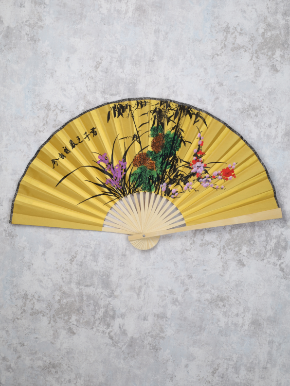 Веер 63 см бамбуковая основа Горчичный с Сакурой / 622-12 /уп 75/742905