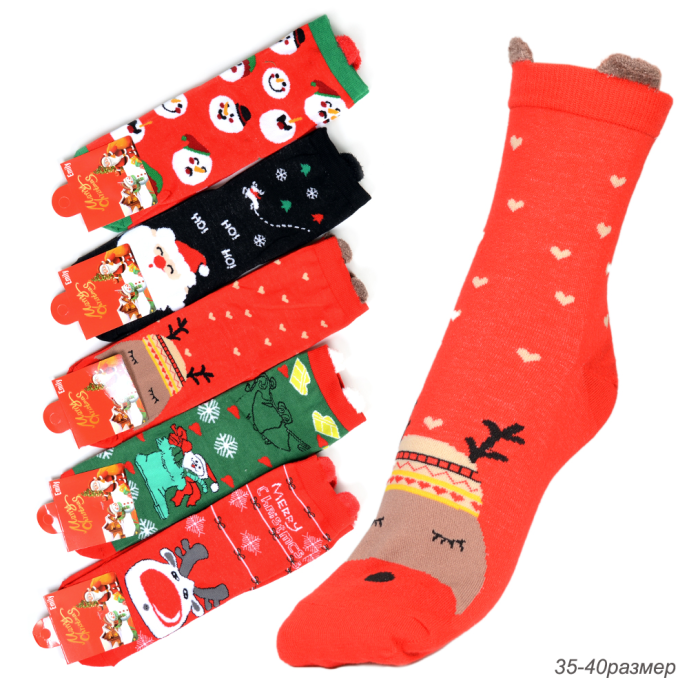 Носки р. 35-40 Новый год / L825 /уп 10/1200/ ОДНА ПАРА/ МАРКА