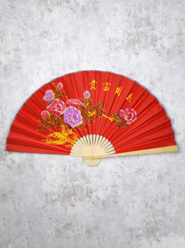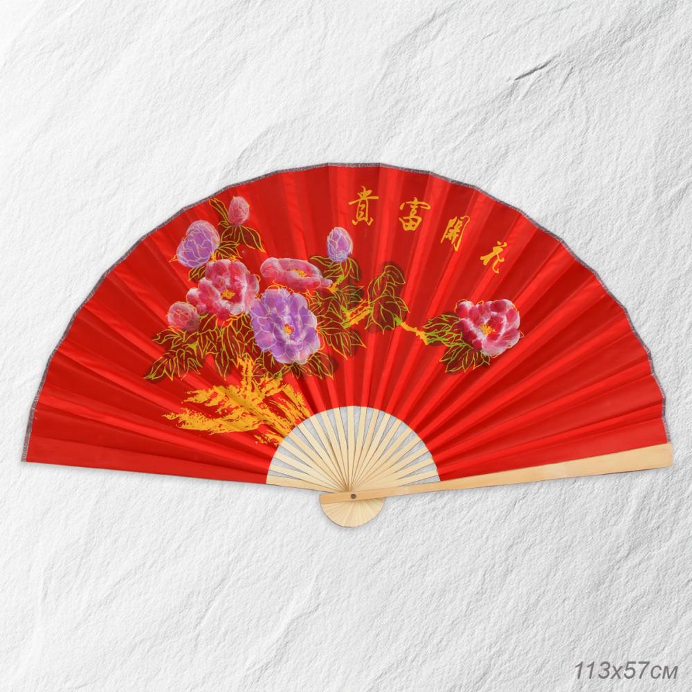 Веер 63 см бамбуковая основа Красный с крупными цветками / 622-12 /уп 75/742905