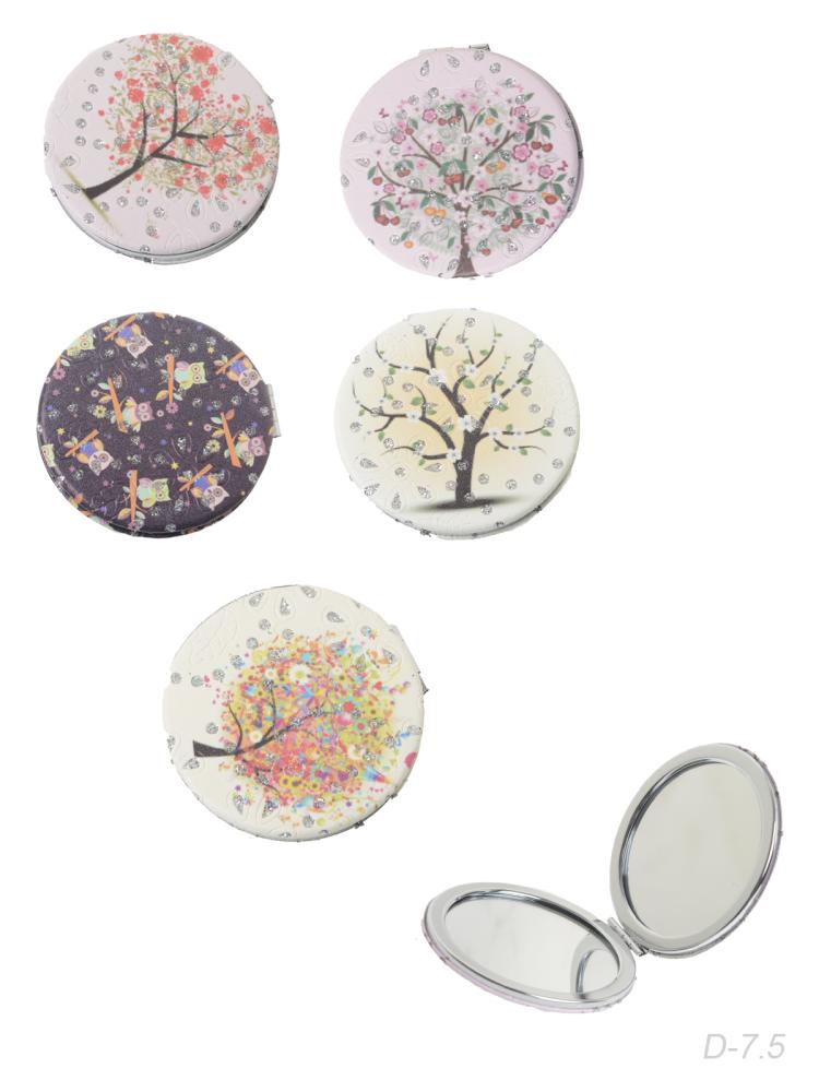 Зеркало карманное 7 см / GT352 /уп 50/300/ кожзам, стразы микс