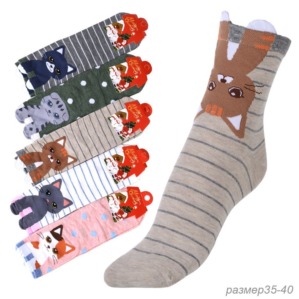 Носки р. 35-40 Кошка / L872 /уп 10/1200/ ОДНА ПАРА/ МАРКА