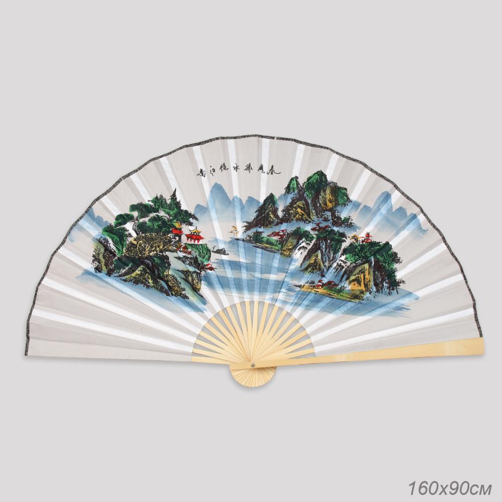 Веер 63 см бамбуковая основа Серый с Пейзажем / 622-12 /уп 75/742905