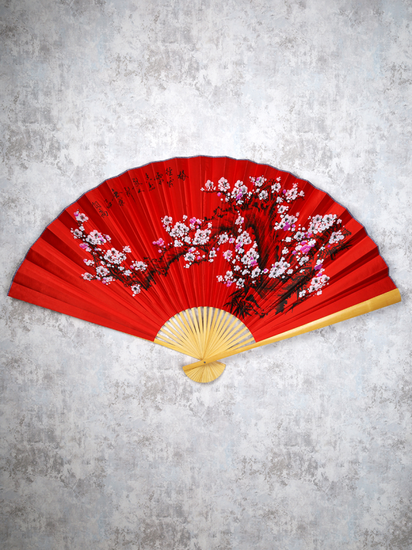 Веер 90 см бамбуковая основа Красный с Сакурой / 622-13 /уп 52/742907