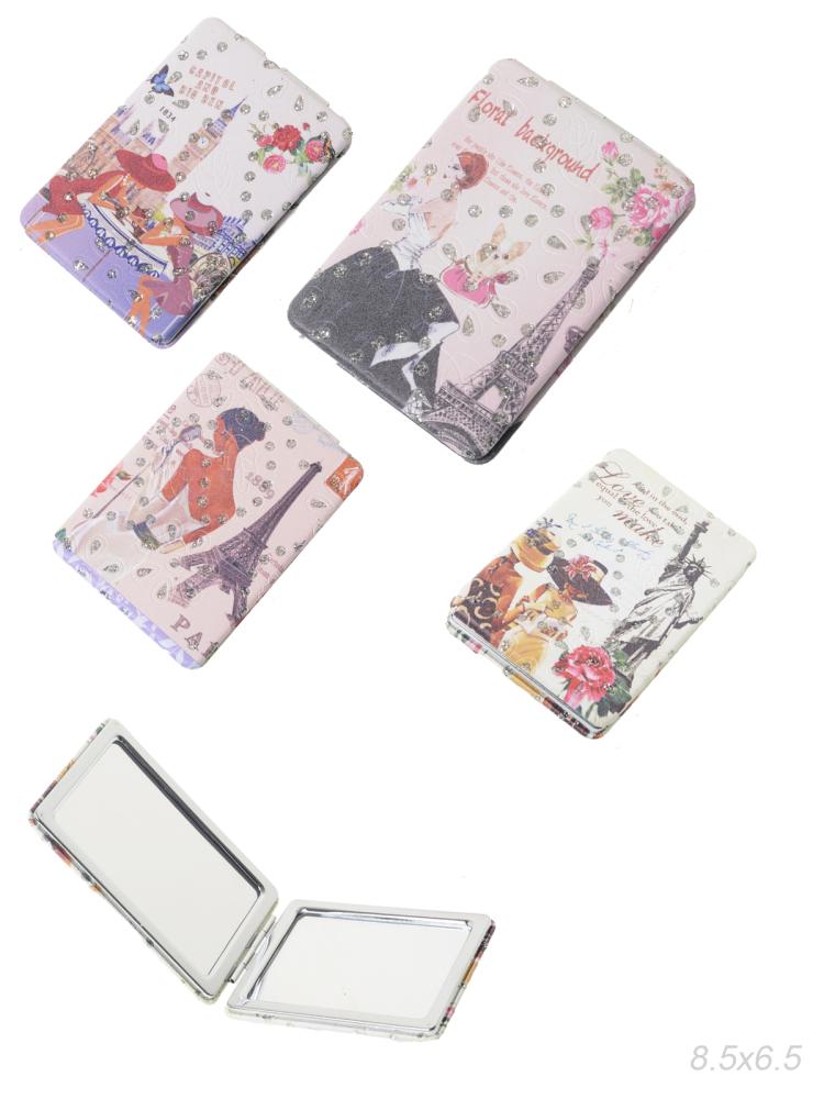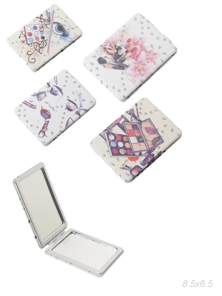 Зеркало карманное 6х8 см / GT349 /уп 50/300/ кожзам, стразы микс