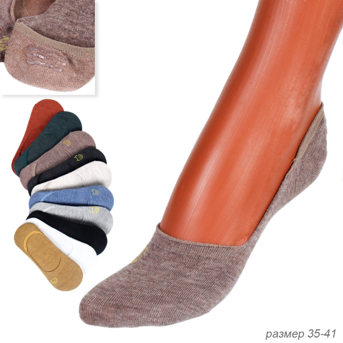 Носки женские р. 35-40 серые/силикон пятка / G307-G /уп 100/ПАРА