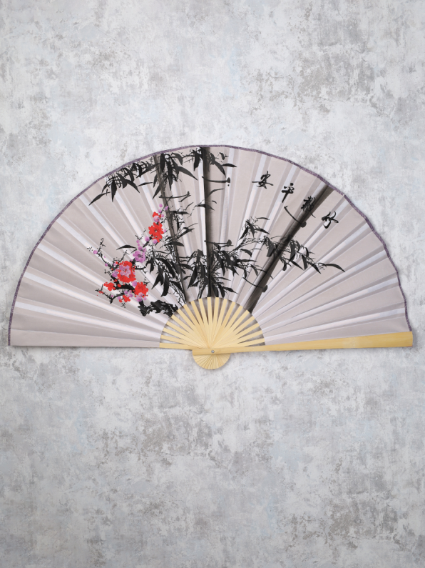 Веер 63 см бамбуковая основа Серый с Цветами / 622-12 /уп 75/742905