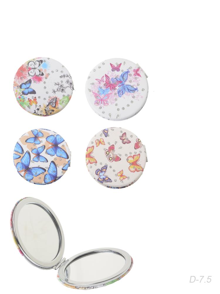 Зеркало карманное 7 см / GT351 /уп 50/300/ кожзам, стразы