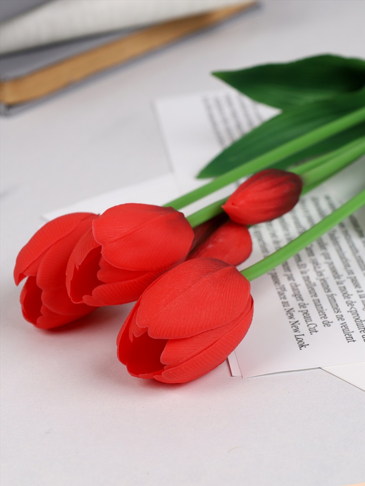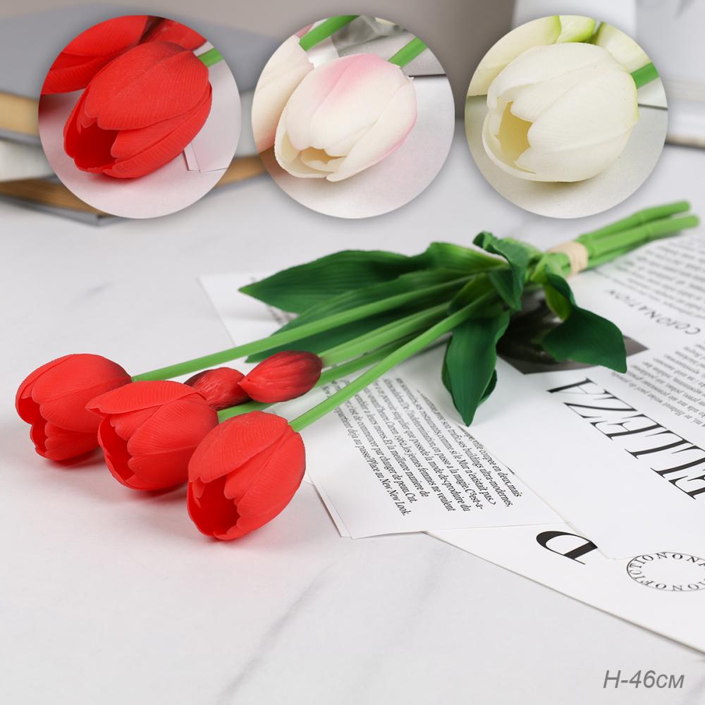 Цветок искусственный Тюльпан 5 штук набор 46 см / GR-008 /уп 30/360/силикон ВЫСОКОГО качества (Красный) 7 фото