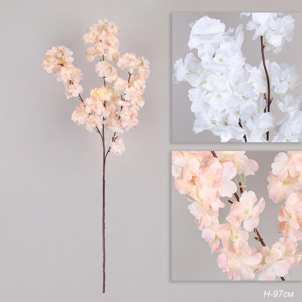 Цветок искусственный Сакура 97 см белая+персиковая / GF-01/1 /уп 500/731740 (Белый) 7 фото
