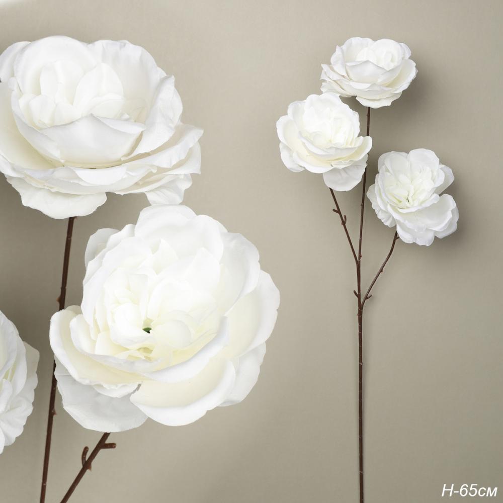 Цветок искусственный БЕЛЫЙ 65 см / ZHQ-3 /уп 200/ 3 бутона 3 фото