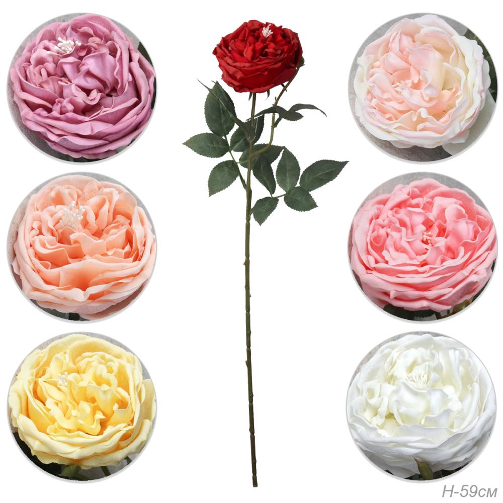 Цветок искусственный Пионовидная роза 59 см / GR-005 /уп 144/силикон 7 фото