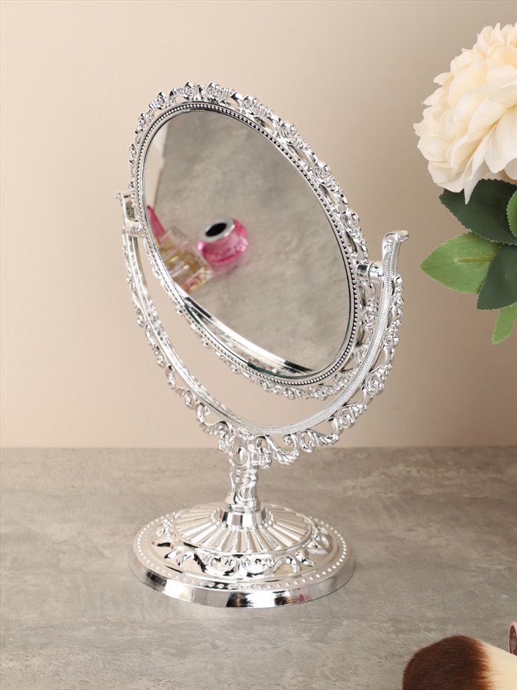 Зеркало настольное ажурное двустороннее 31 см овал / YDW-12 /уп 48/серебро 4 фото