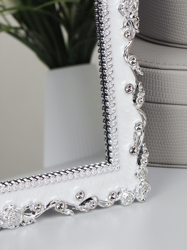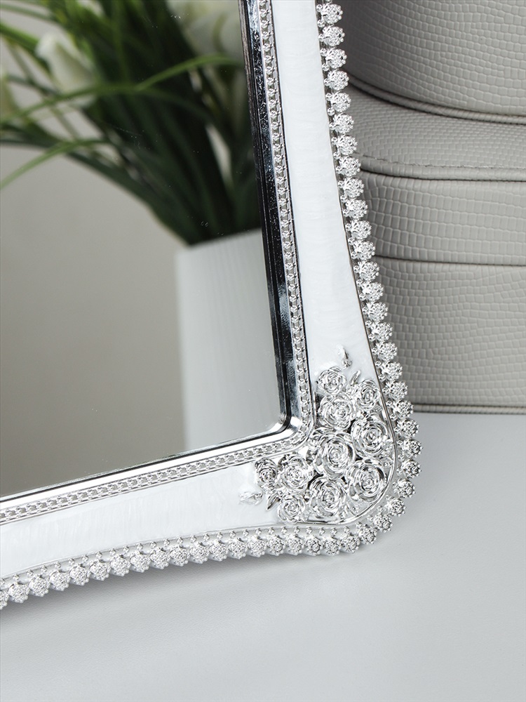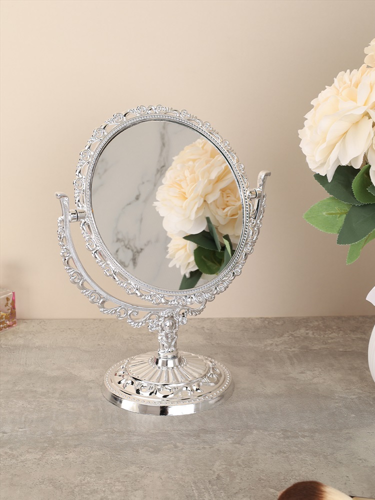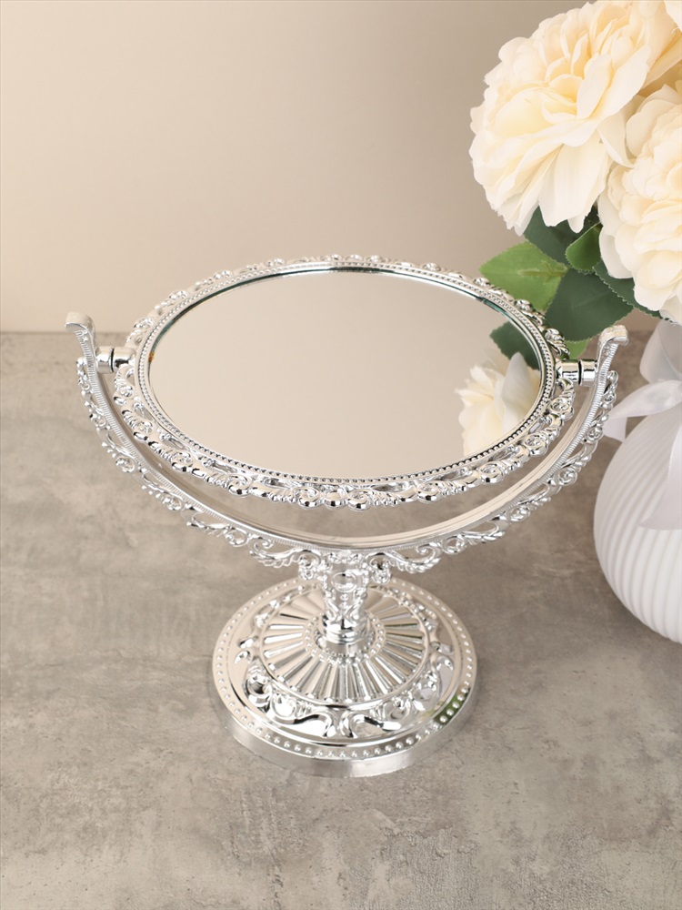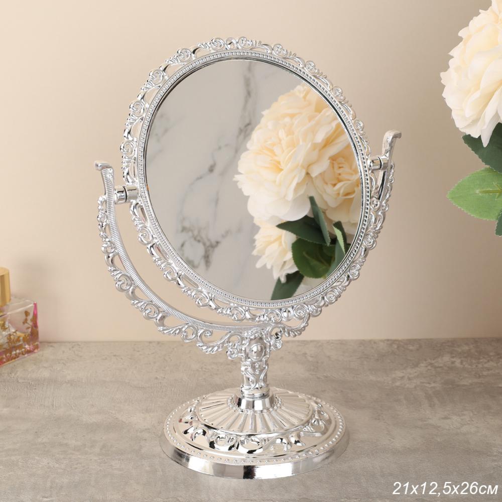 Зеркало настольное ажурное двустороннее 26 см круглое / YDW-07 /уп 48/серебро 4 фото