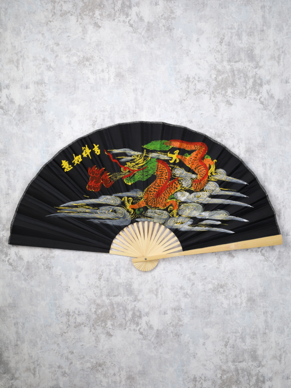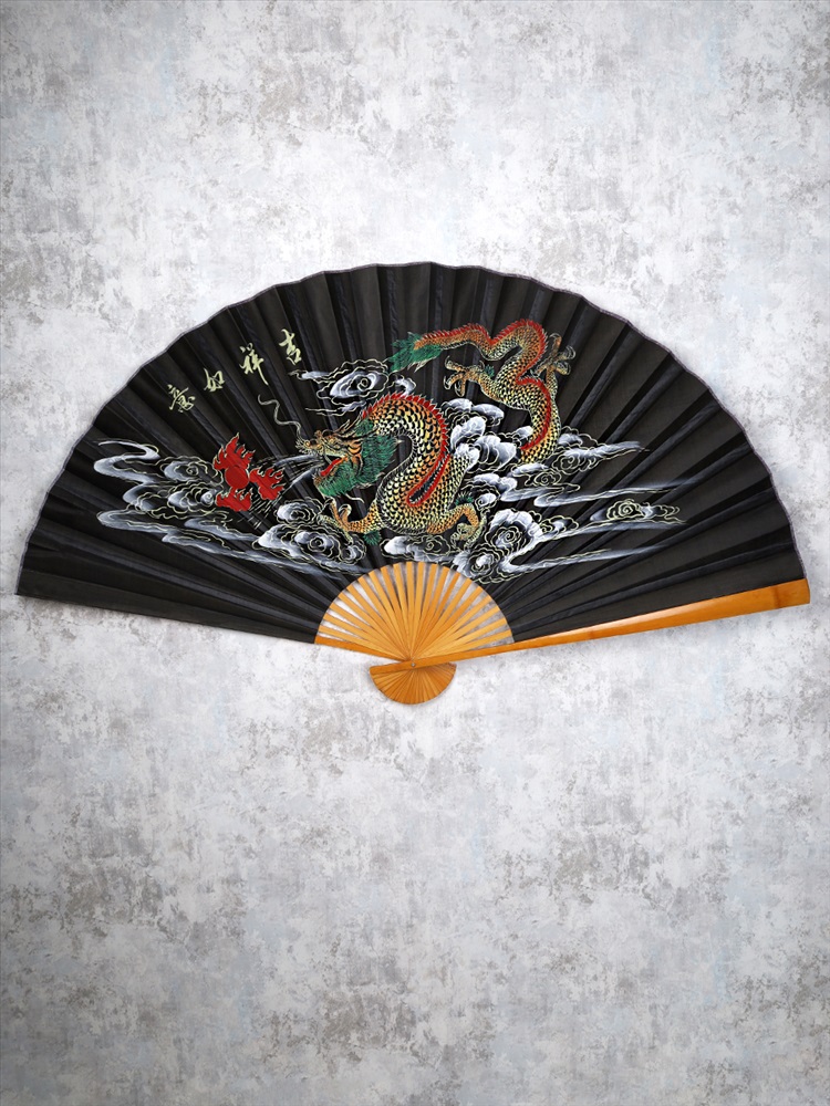 Веер 63 см бамбуковая основа Черный с Драконом / 622-12 /уп 75/ 7 фото