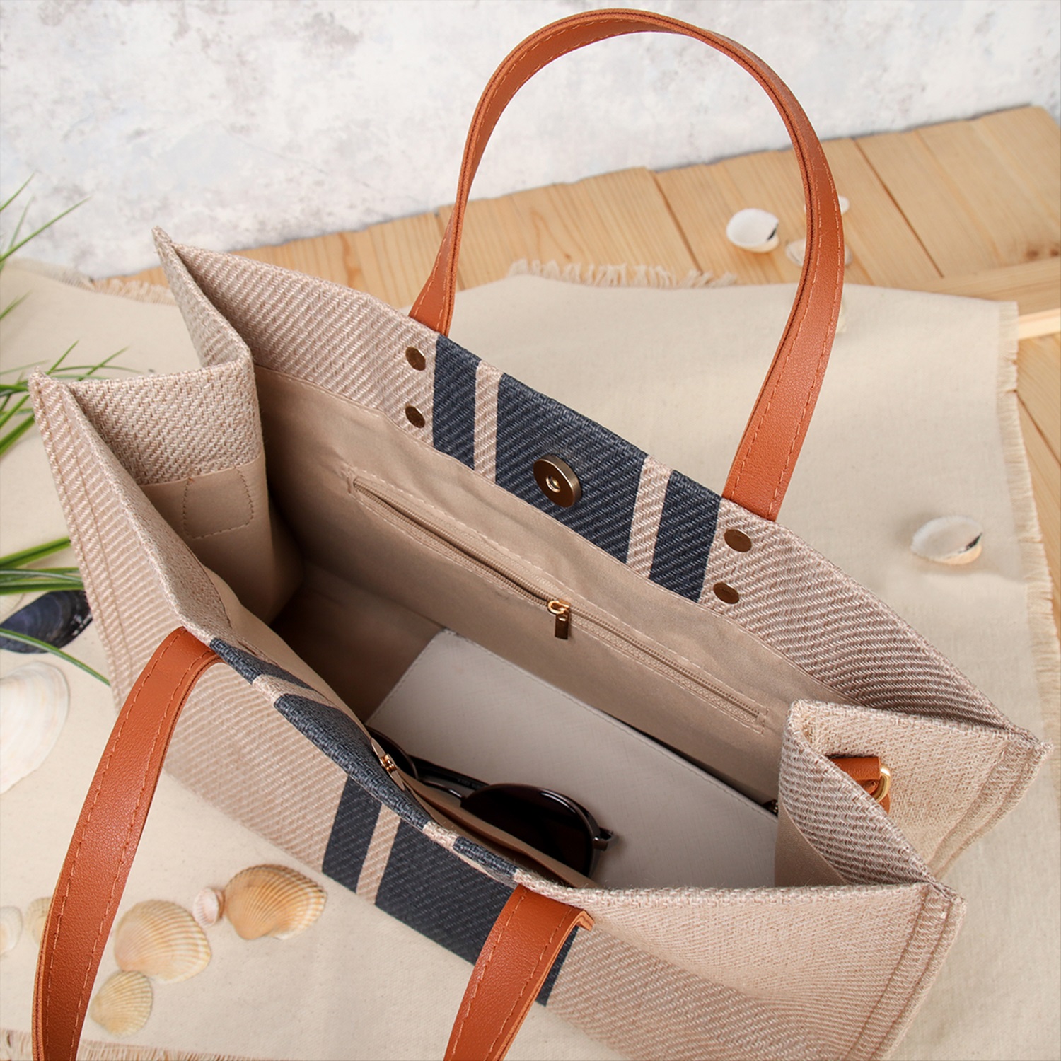 Сумка пляжная на молнии 43х45х8 см / JN001 /уп 1/ 7 фото